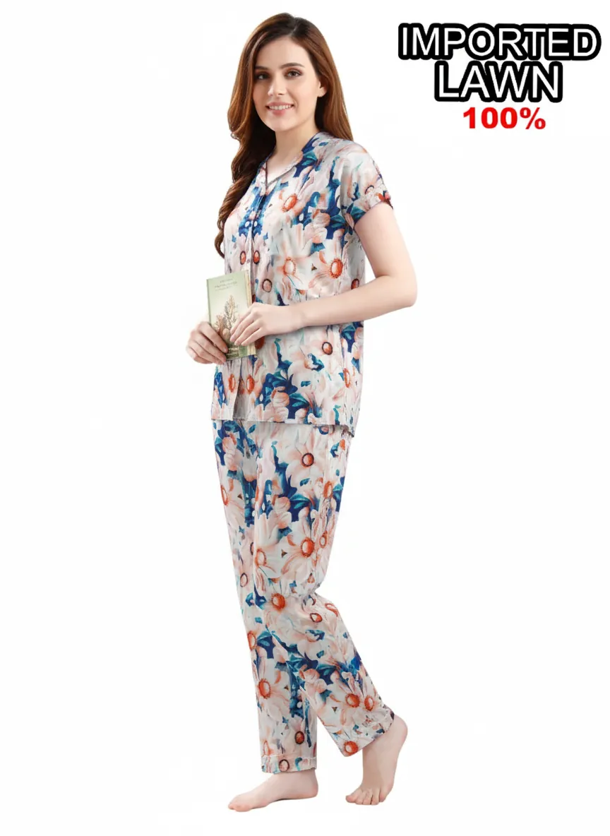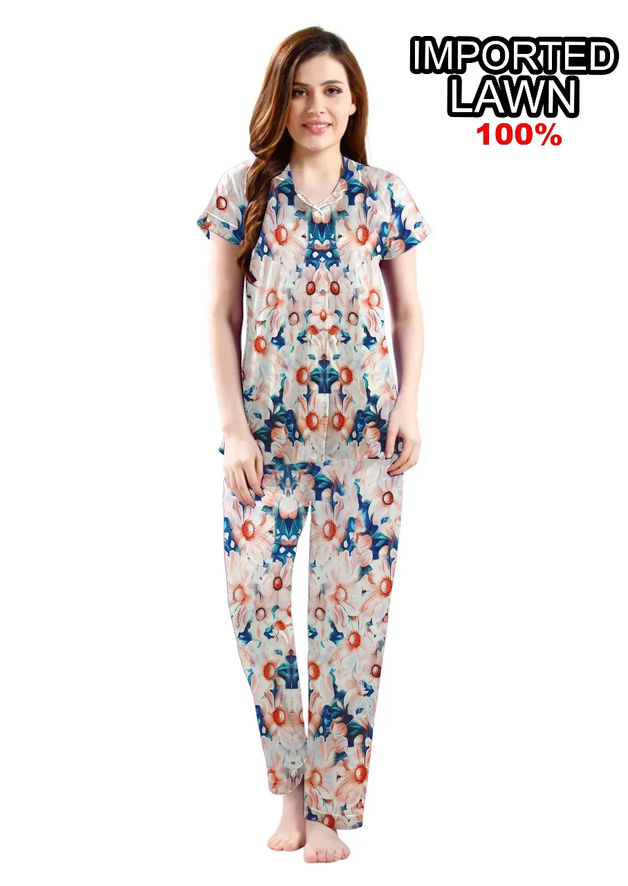 Elevate your nighttime routine with this soft and breathable 2-piece pajama set. Crafted from premium 100% imported lawn, this night suit is light on the skin and perfect for warmer seasons.