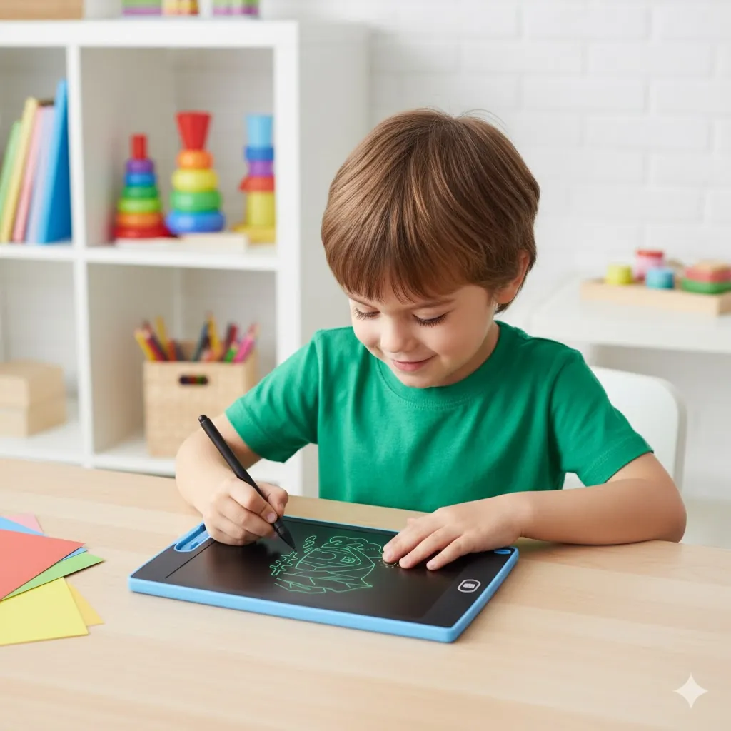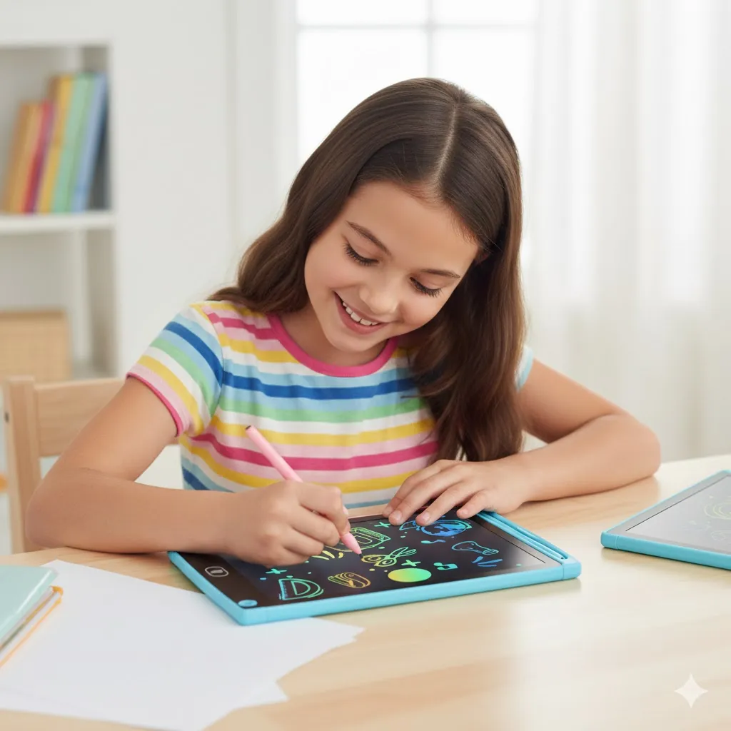 Say goodbye to paper waste! With a simple touch of the one-click erase button, the screen instantly clears, providing a reusable surface for over 100,000 uses. This makes it an eco-friendly and cost-effective tool for sketching, practicing math/spelling, taking quick notes, or leaving family messages. The screen is designed to be eye-friendly, emitting no blue light or radiation, ensuring safety even during long periods of use. Its lightweight and durable construction makes it an essential, mess-free companion for home, school, office, or travel.