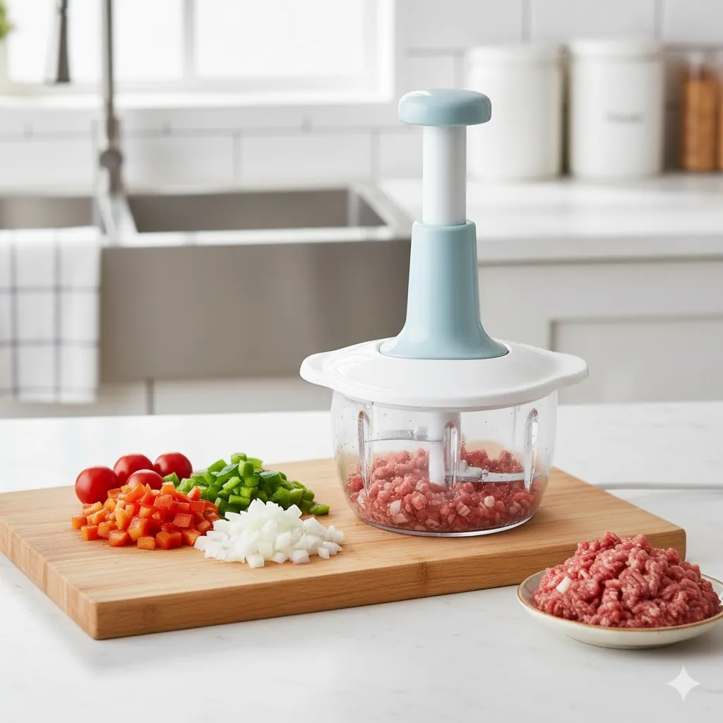 Ideal for vegetables, fruits, nuts, herbs, and meat, this chopper combines speed with convenience.