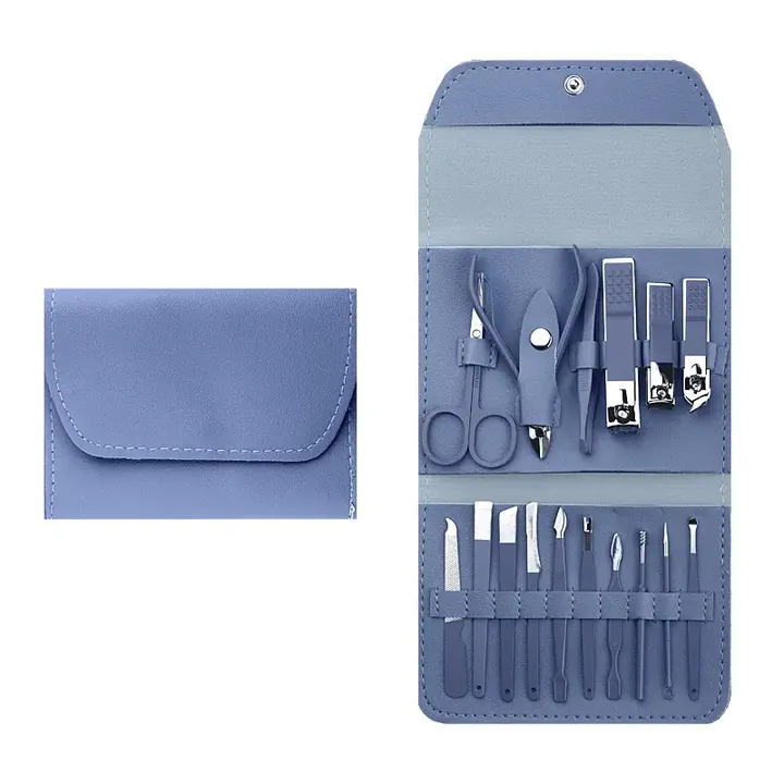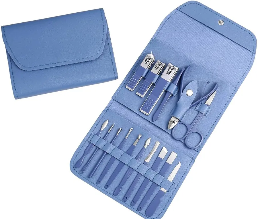 Achieve salon-quality manicures and pedicures in the comfort of your own home with our comprehensive 16-Piece Premium Stainless Steel Manicure & Pedicure Set. This elegant set, presented in a stylish dark blue faux leather travel case with a secure snap closure, contains all the essential tools for maintaining healthy and well-groomed nails. Each instrument is crafted from high-quality stainless steel, ensuring durability, sharpness, and resistance to rust and corrosion. The meticulously designed tools provide precision and ease of use for trimming, shaping, filing, and cleaning both fingernails and toenails. Perfect for personal use or as a thoughtful gift, this complete set is your go-to solution for professional nail care on the go or at home.