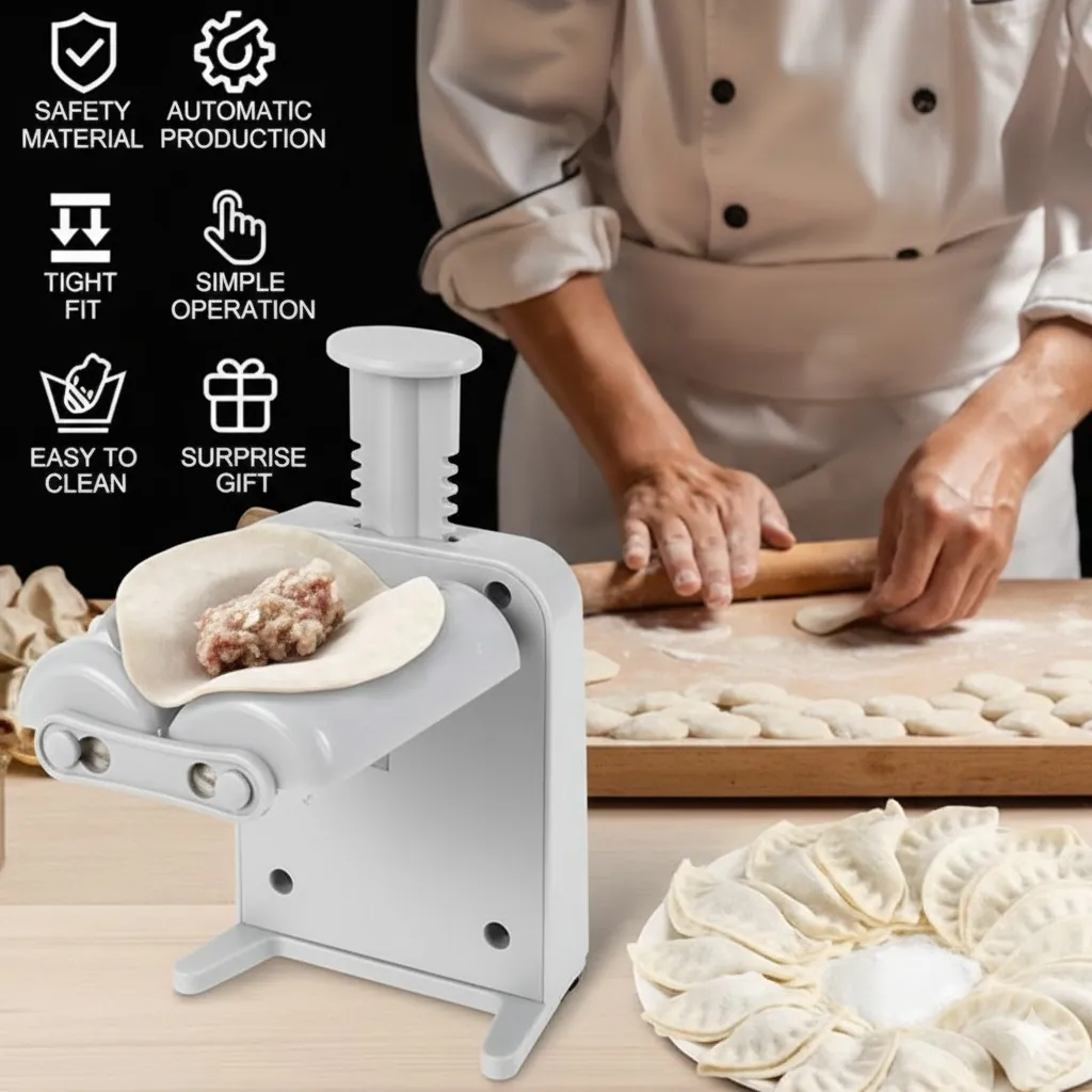 Say goodbye to tedious manual rolling and sealing! This innovative 2-in-1 Manual Dumpling Maker Machine is a must-have kitchen gadget for every home chef. It features a simple dough pressing function to create perfect, thin wrappers and a folding press to quickly seal and crimp your dumplings, giving them a professional, uniform look every time. Perfect for making Chinese jiaozi, Indian momos, Latin empanadas, or Polish pierogies. Made from food-grade, durable plastic, it's easy to use, labor-saving, and a fun tool for family cooking sessions. Achieve perfectly sealed edges that won't burst during cooking!
