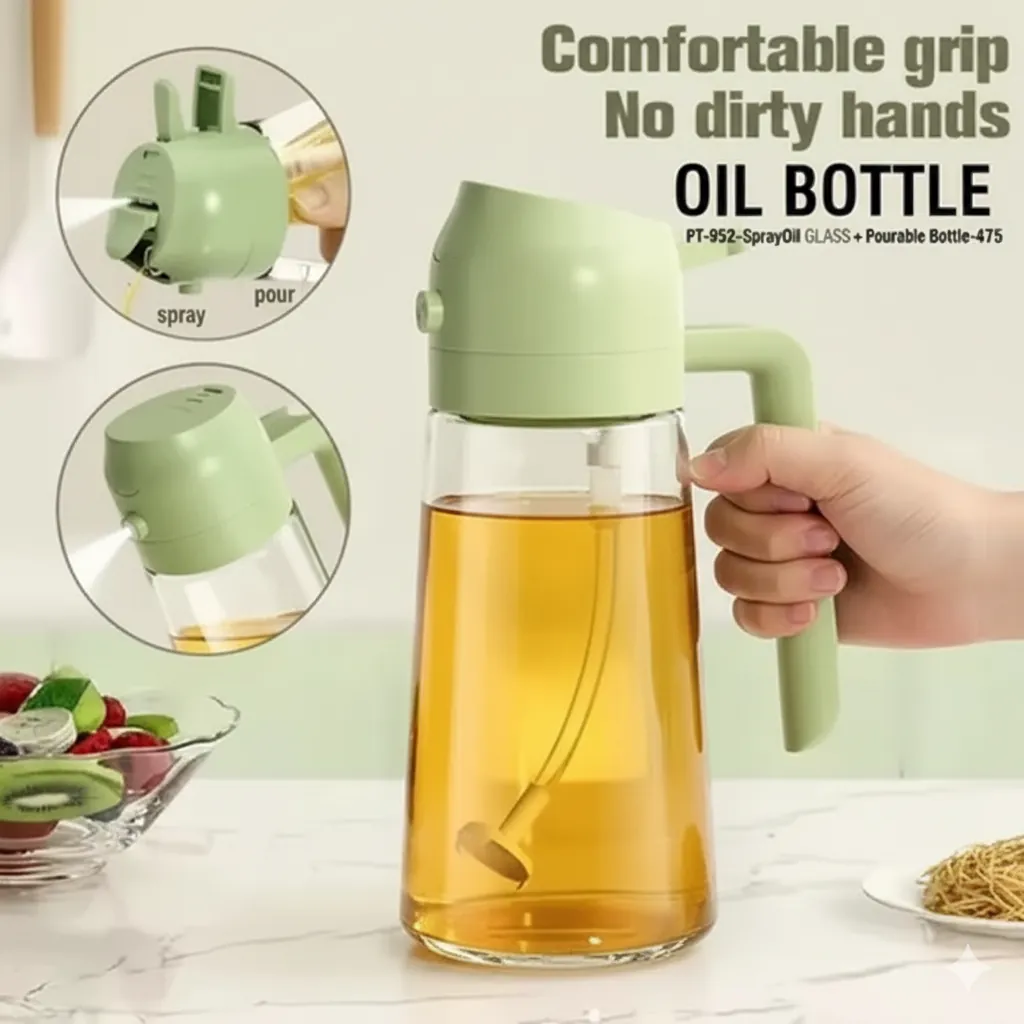 2-in-1 Oil Dispenser Bottle with Integrated Pourer & Sprayer - Glass Oil Cruet for Cooking & Kitchen