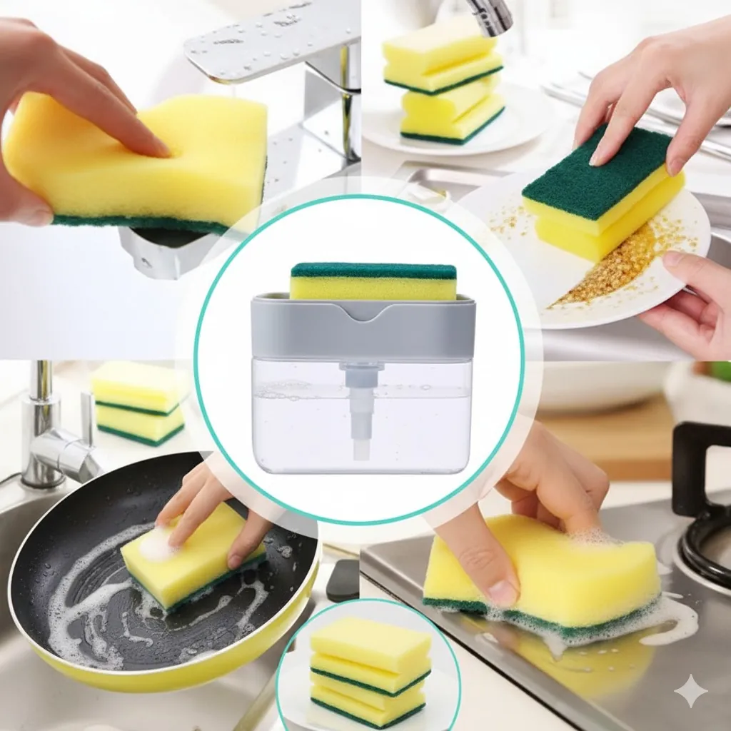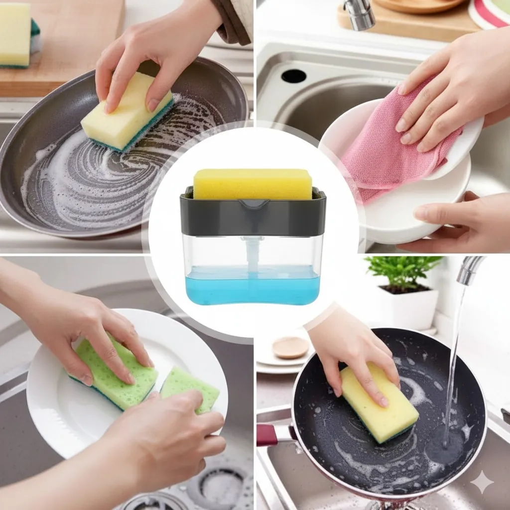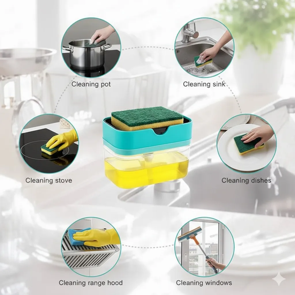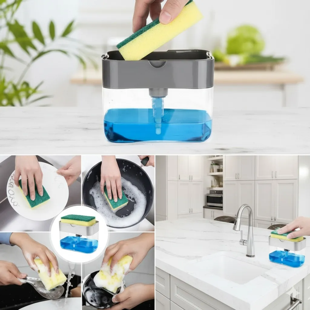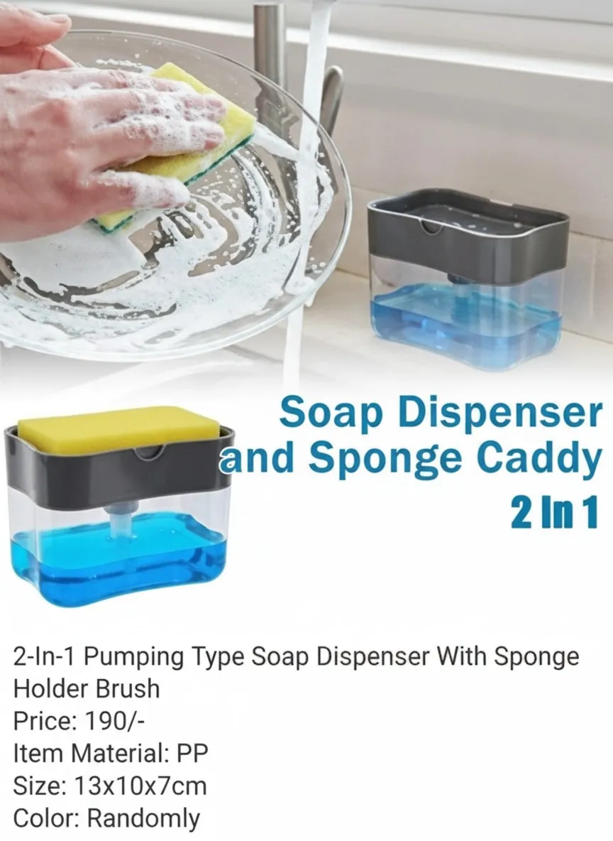 Streamline your dishwashing routine and eliminate countertop clutter with this innovative 2-in-1 Pumping Type Soap Dispenser and Sponge Caddy. Designed for ultimate convenience, the unit allows for simple, one-handed operation: just press down on the top plate to dispense the perfect amount of soap directly onto the included sponge or scrubbing brush. This not only saves time but also reduces soap wastage and keeps your sink area tidy and dry.