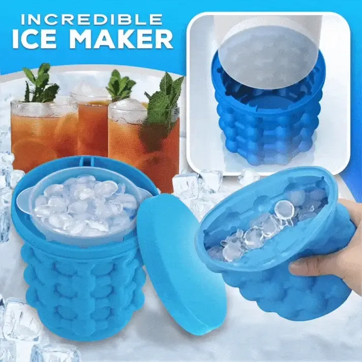 Revolutionize your ice-making with our 2-in-1 Silicone Ice Cube Maker & Storage Bucket. This innovative and space-saving device replaces traditional ice trays, allowing you to freeze and store a large quantity of ice cubes in one place. Simply fill the outer chamber with water and freeze. The flexible silicone design makes it effortless to squeeze and release the cubes into the inner tank for easy access. Made from safe, non-toxic, and food-grade silicone, it comes with an airtight lid to keep your ice fresh and odor-free. The bucket can also be used as a convenient beverage cooler for parties, picnics, and everyday use.