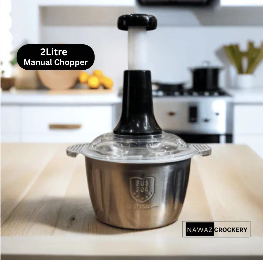 The Stainless Steel Push Chopper 2L is a versatile kitchen tool designed to simplify food preparation. With a 2-litre capacity and sharp stainless steel blades, it chops vegetables, fruits, nuts, and meat quickly and evenly. The push mechanism allows effortless operation while keeping hands safe from blades. Its durable construction ensures long-lasting performance, and the compact design makes it easy to store. Ideal for daily cooking or preparing meals for gatherings, this chopper saves time and effort in the kitchen. Easy to clean and maintain, it’s a practical and essential tool for every modern kitchen.
