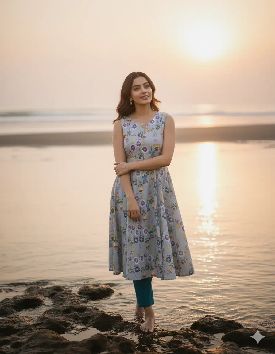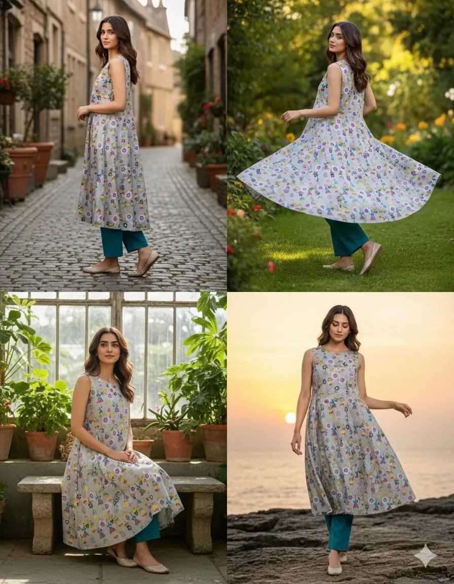 2-Piece Abstract Floral Linen Dress for Women | Stylish Teal & Gray Suit Set | Summer Collection