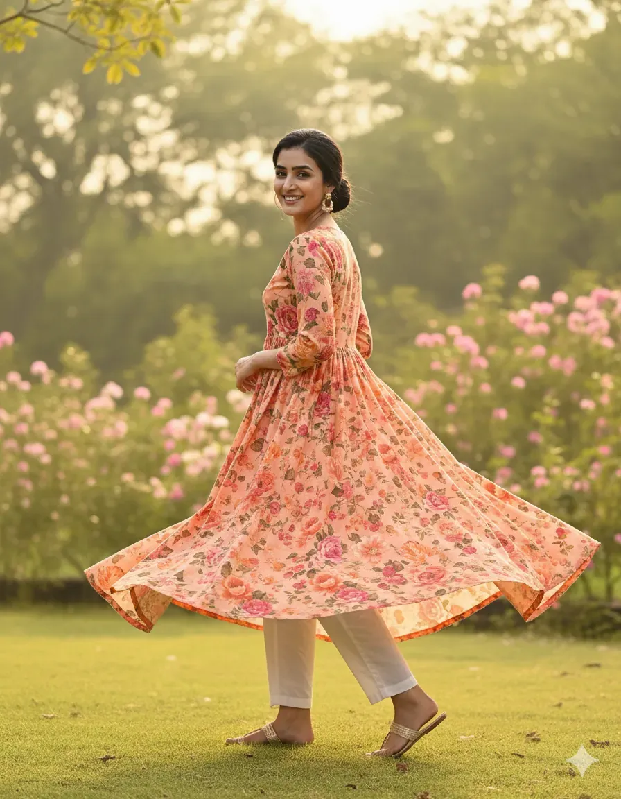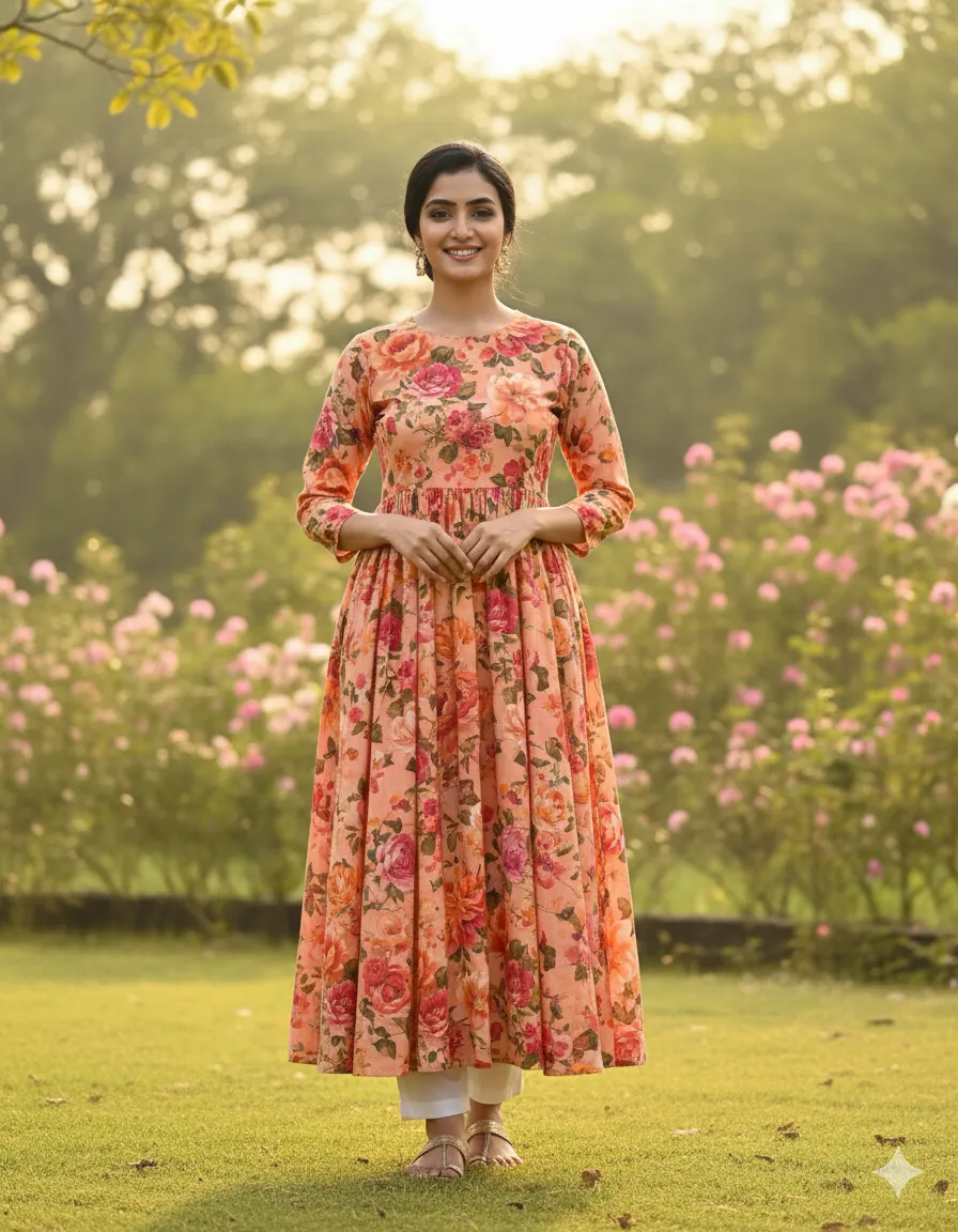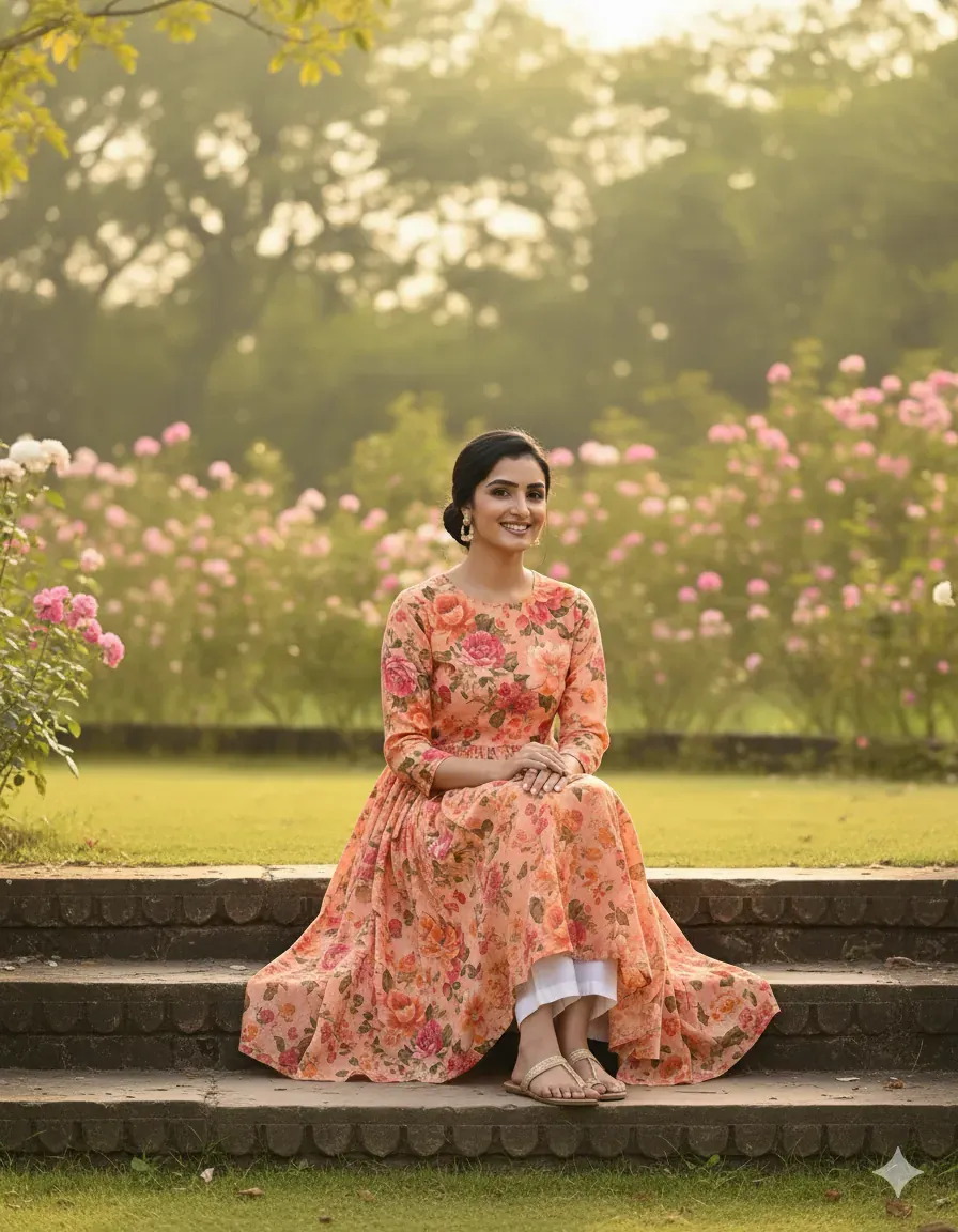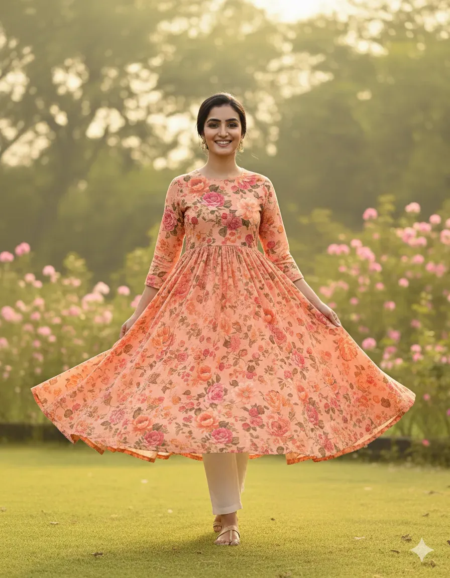 2-Piece Floral Printed Linen Dress for Women | Stylish Orange & White Suit Set | Summer Collection
