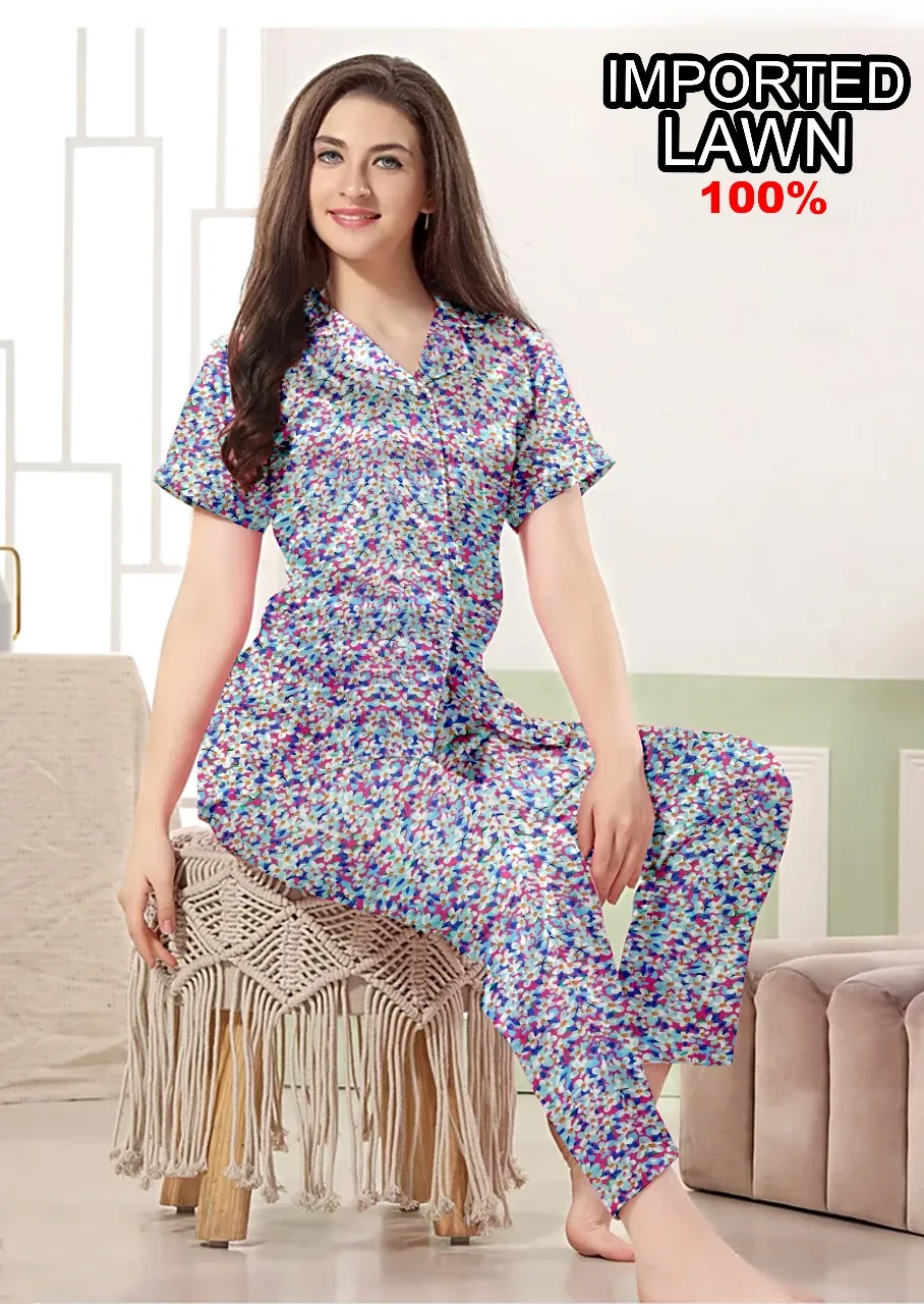 2-Piece Imported 100% Pure Lawn Night Suit for Women – Soft, Breathable & Stylish Sleepwear