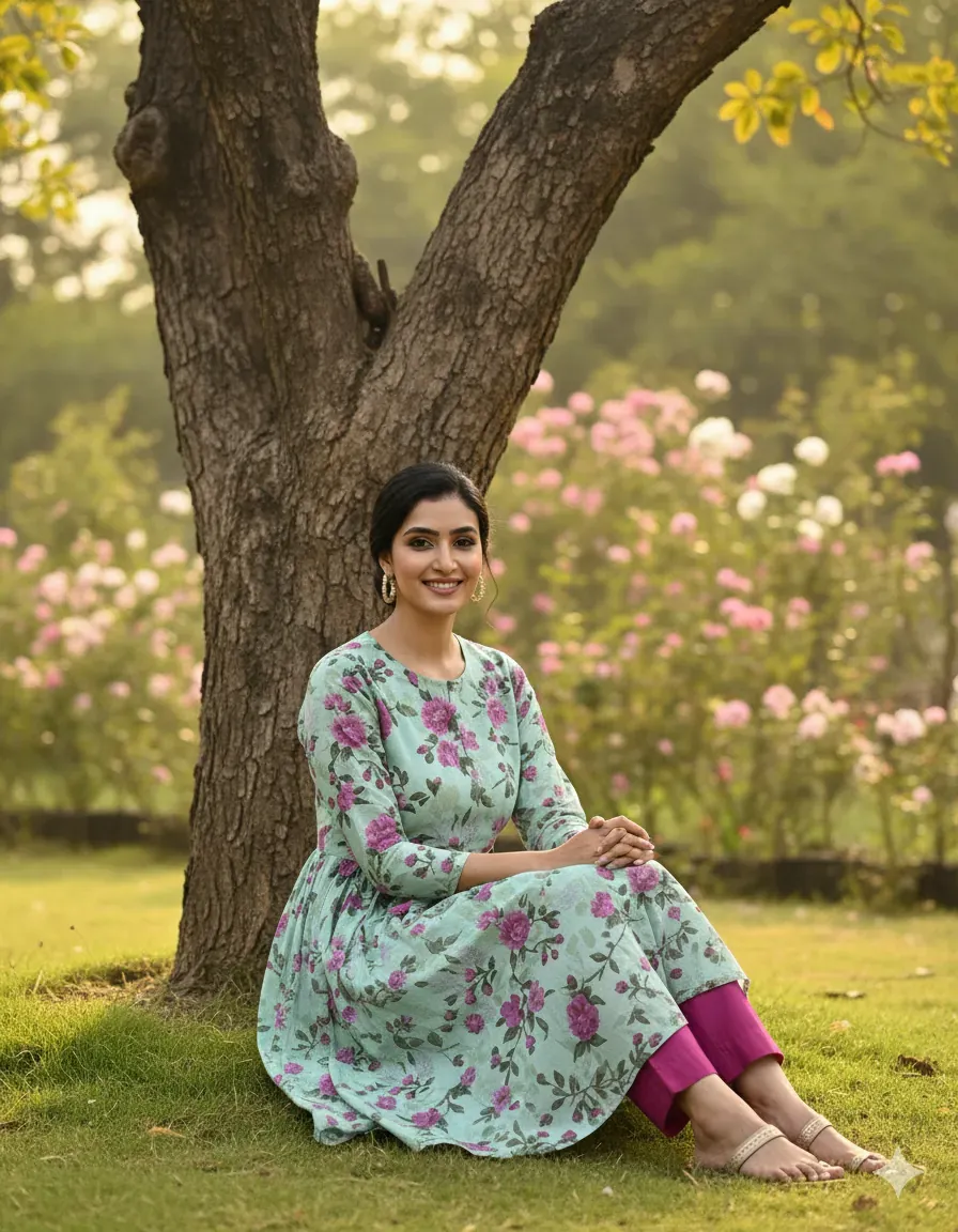 2-Piece Printed Linen Dress for Women | Stylish Floral Printed Shirt & Plain Trouser | Summer Collection