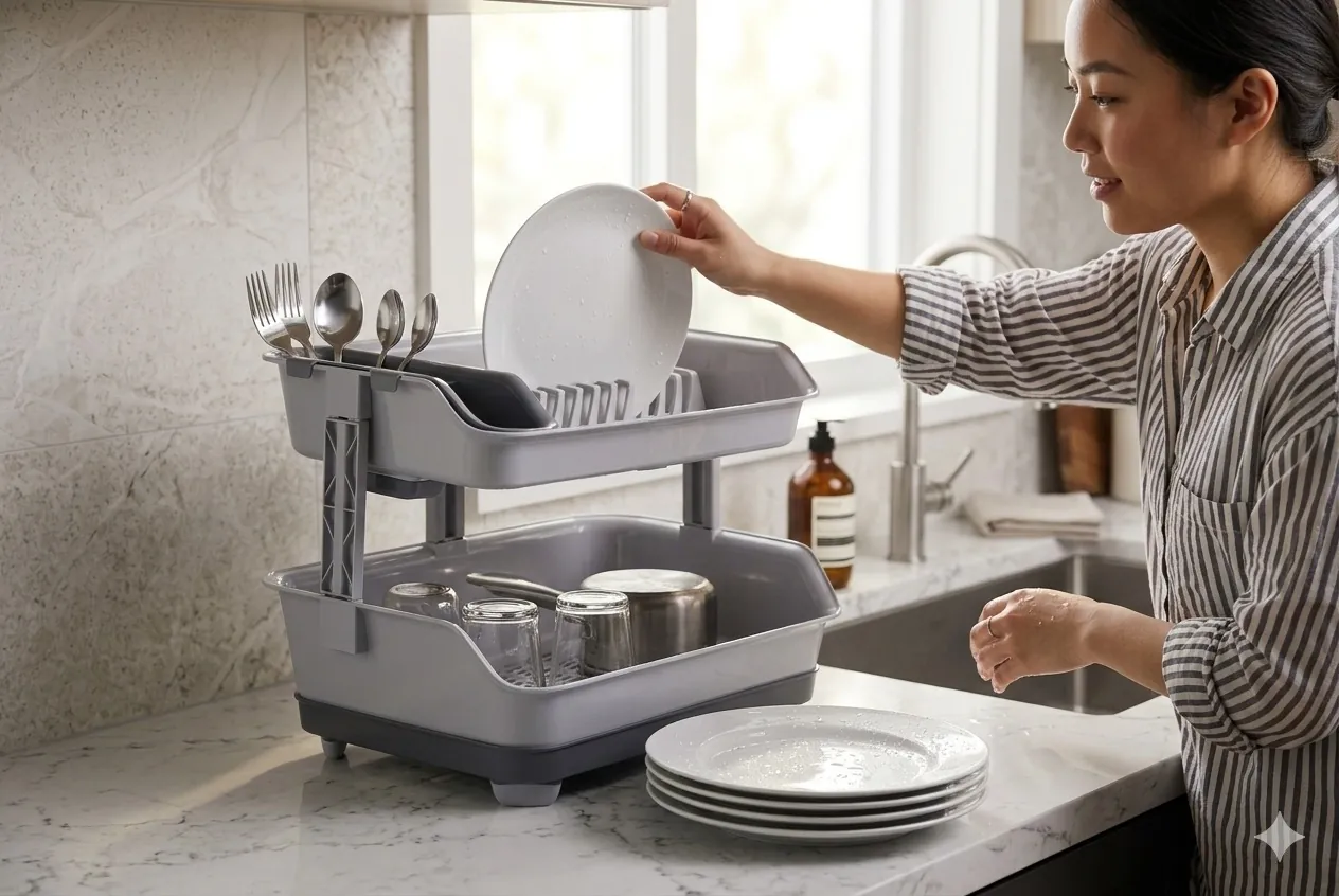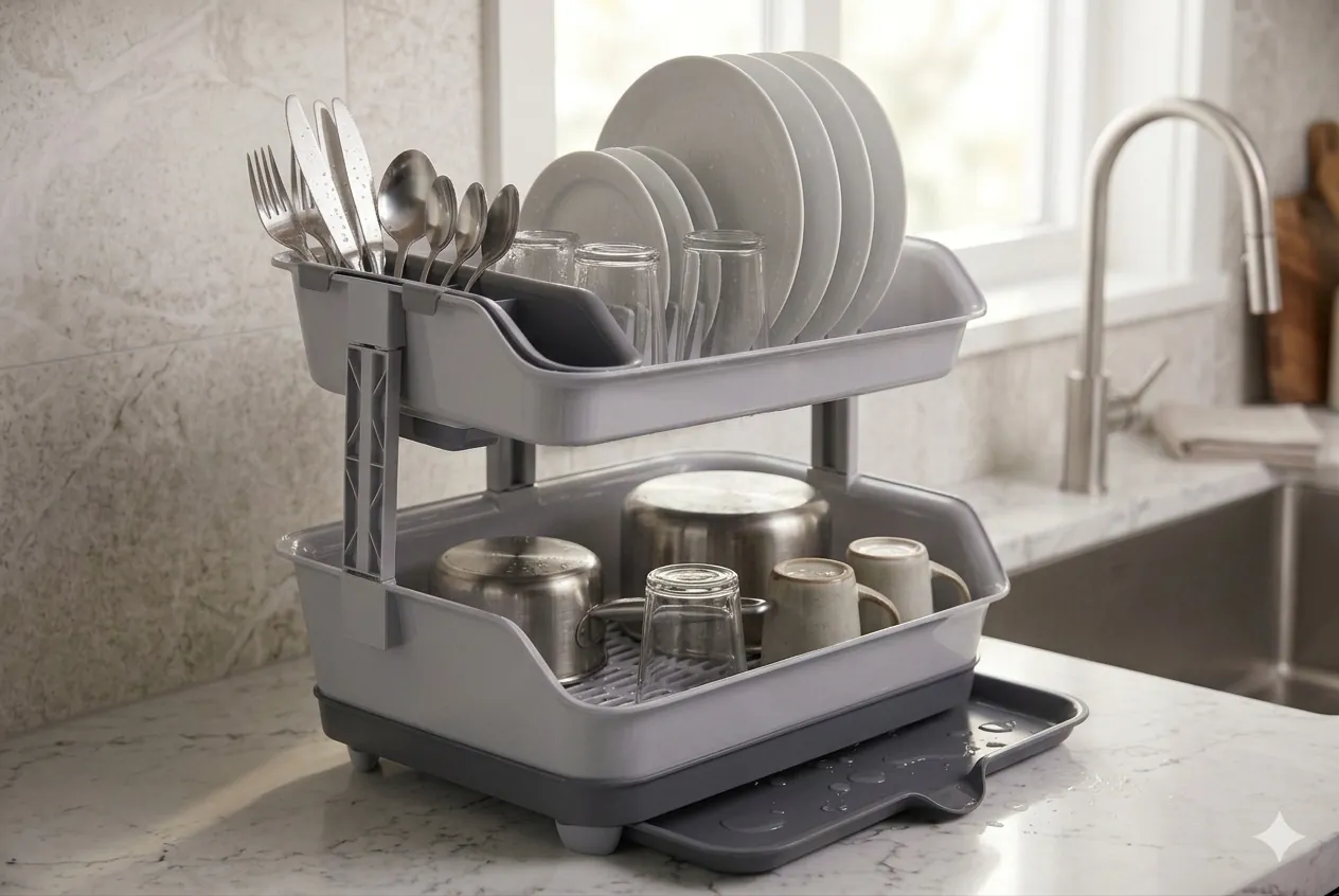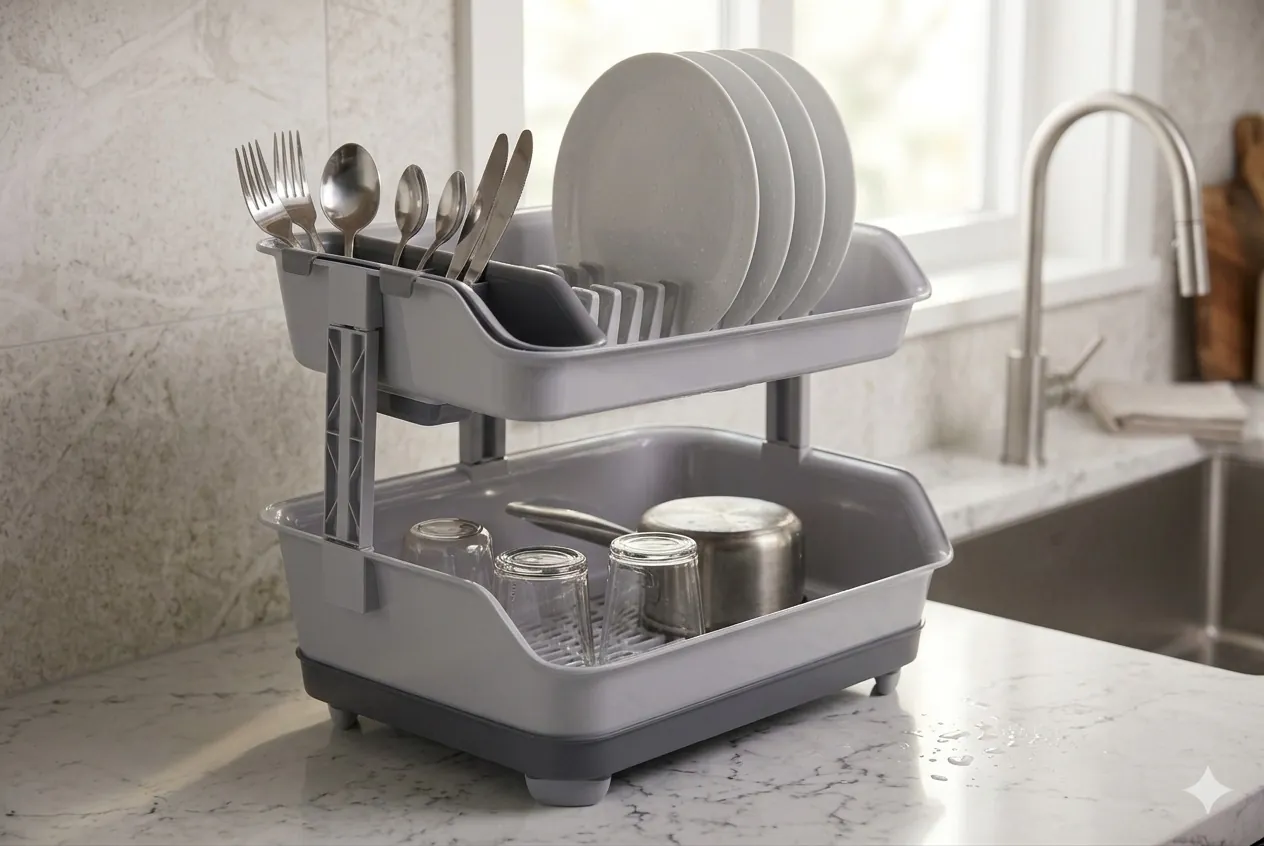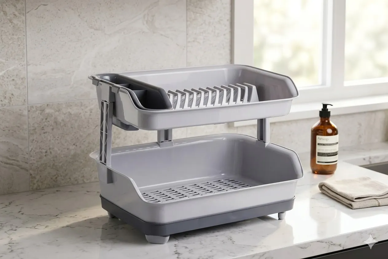 Upgrade your kitchen organization with our Premium 2-Tier Plastic Dish Rack. Crafted from high-quality, BPA-free PP material, this drying station is built to handle the daily demands of a busy household without the worry of rust or corrosion.