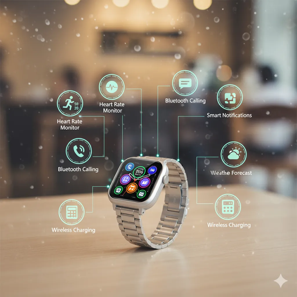 Bluetooth Calling: Allows the user to receive and answer calls directly from the wrist.
