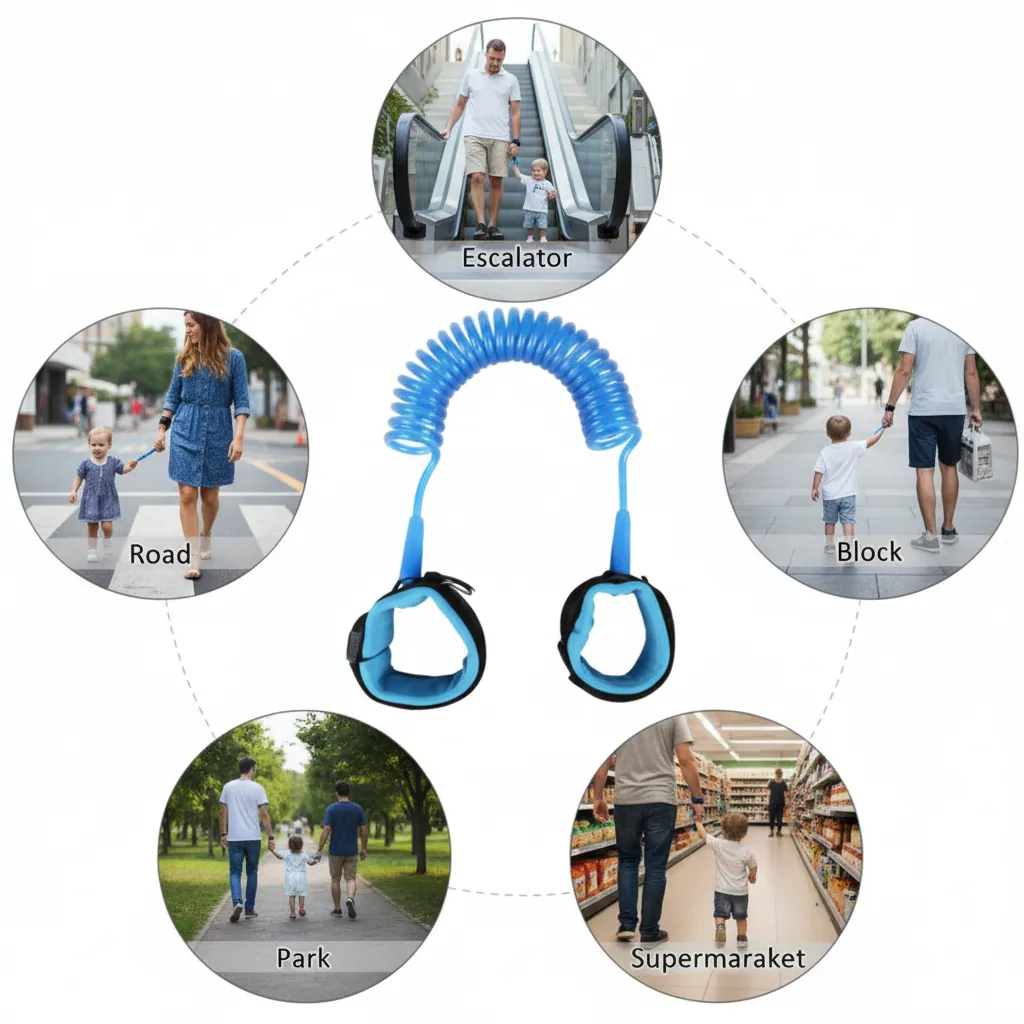 Ensure your child's safety and your peace of mind while out in public with the 2.5M Child Safety Anti-Lost Wrist Link. This essential safety harness is perfect for use in crowded places like shopping malls, supermarkets, airports, parks, and busy streets. It gives your toddler the freedom to explore their surroundings while keeping them securely connected to you.