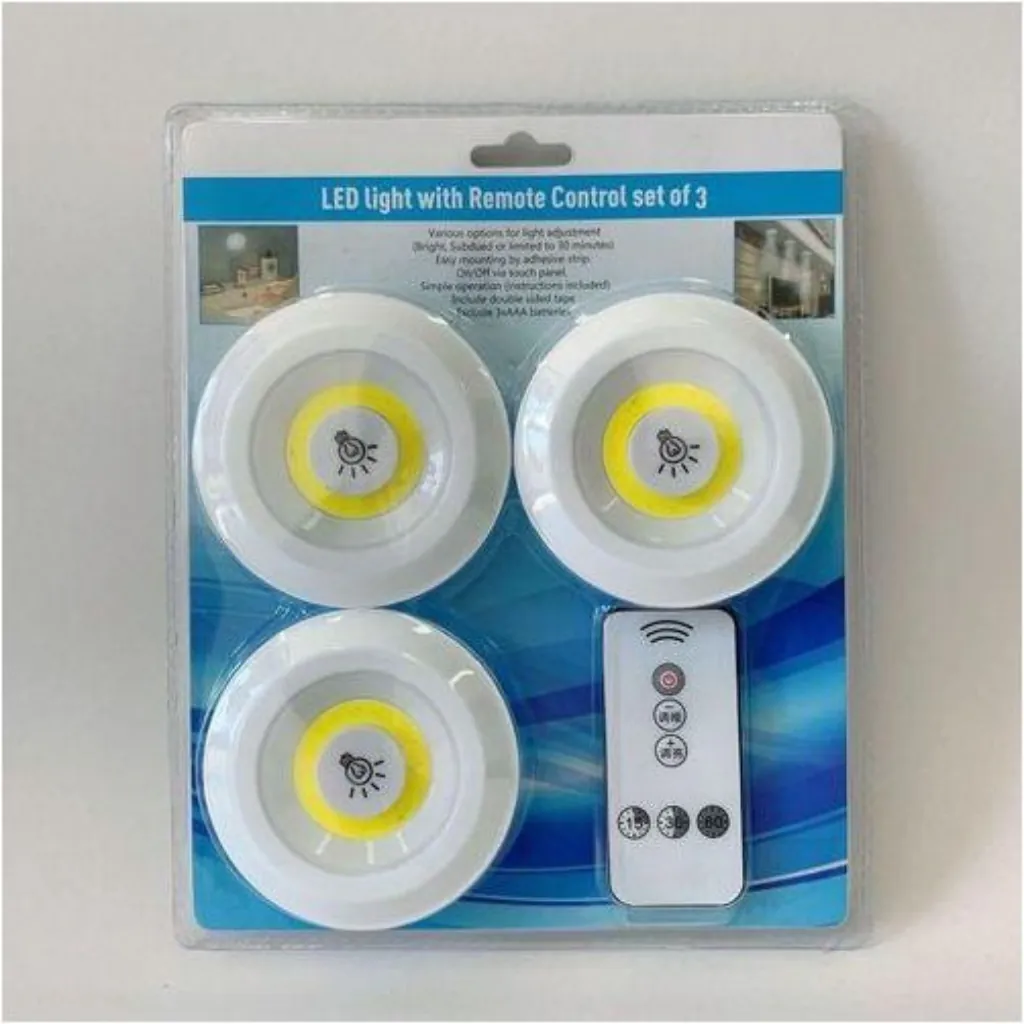Light up any space quickly and easily with this 3-Pcs Tap LED Light Set with Remote Control. These wireless stick-on puck lights are battery-powered and can be turned on/off via touch or remote, offering convenience and flexibility for your home lighting needs.