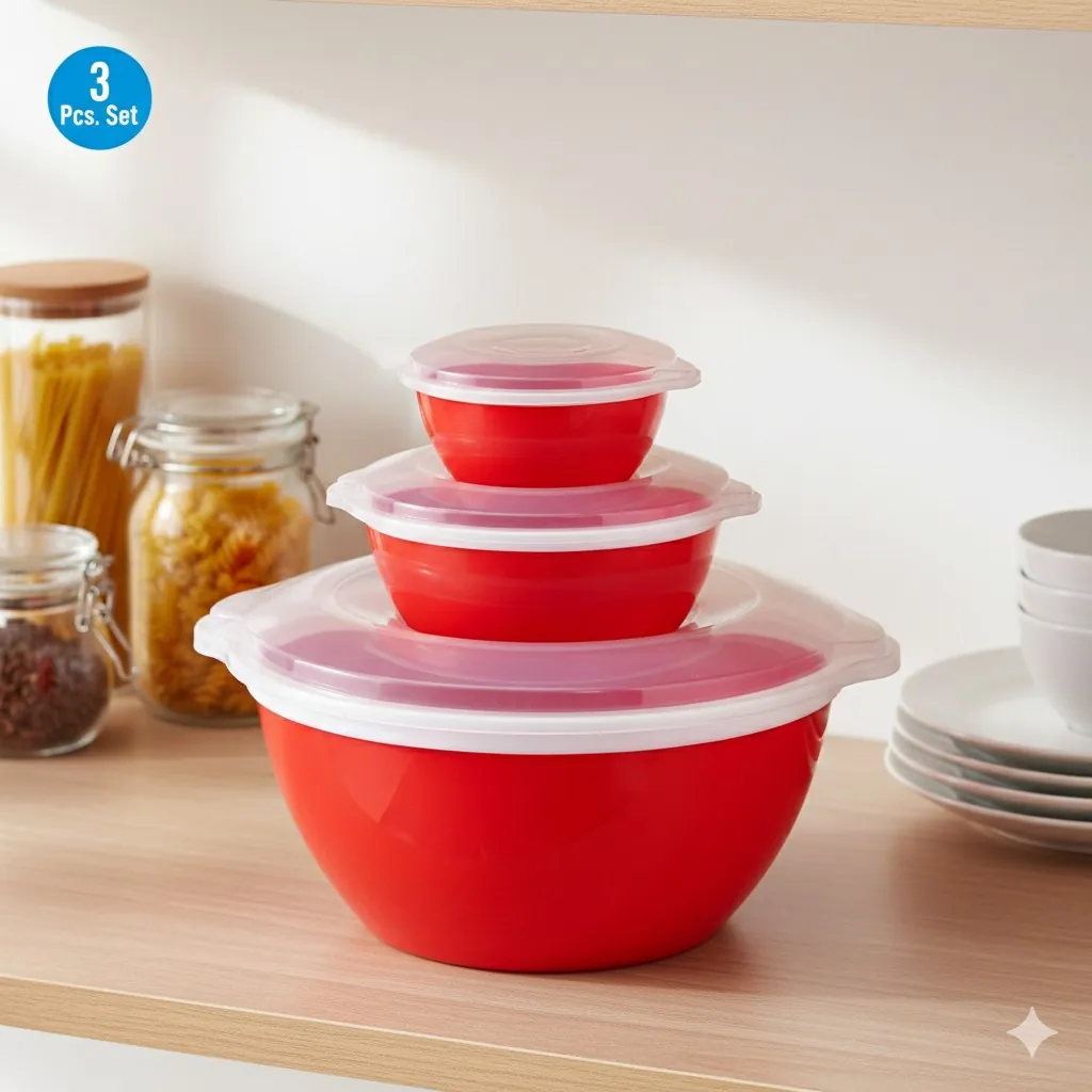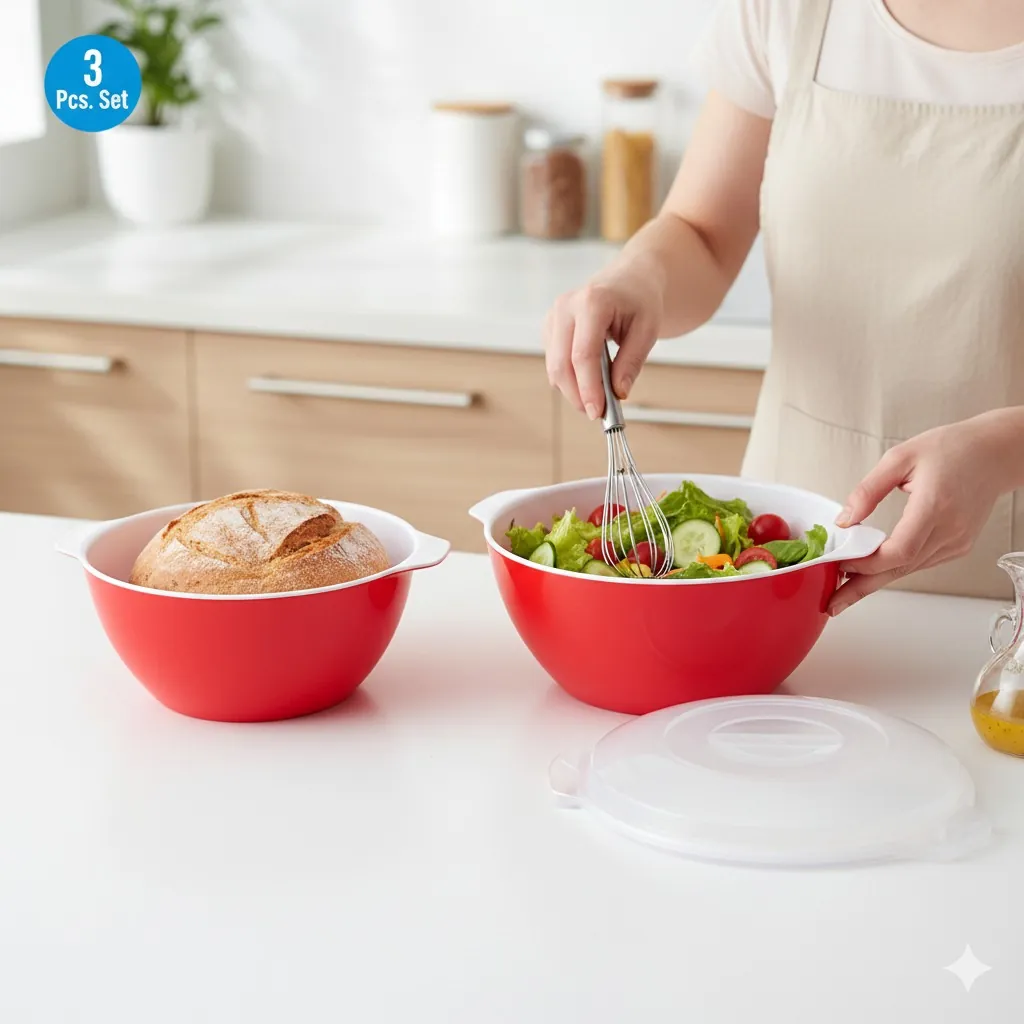 Take the hassle out of food preparation and storage with our Premium Red Plastic Mixing Bowl Set. This versatile 3-piece collection is designed to be the ultimate kitchen workhorse. Whether you are kneading dough for fresh bread, tossing a garden salad, or storing last night's dinner, these bowls provide the perfect solution.