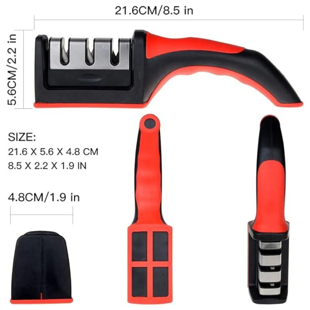 Say goodbye to dull blades with this high-performance 3-Stage Knife Sharpener. Designed for home chefs and kitchen enthusiasts, it features three sharpening slots—coarse for reshaping, fine for honing, and ceramic for polishing. The ergonomic handle provides a secure grip, while the non-slip base ensures safety during use. Available in sleek black or bold red-black, it’s a must-have tool for every kitchen.