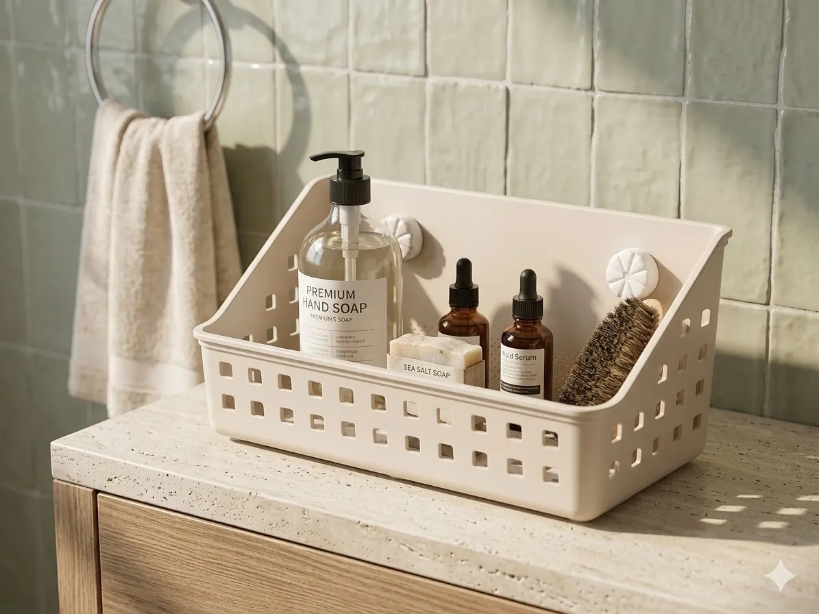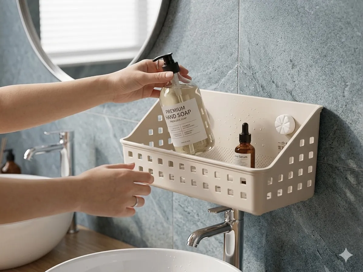 The standout feature is the dual flower-motif suction cups, which provide a secure, industrial-strength hold on smooth surfaces like tile, glass, or acrylic—no drilling or hardware required. Crafted from high-quality, BPA-free thickened plastic, the basket features a lattice drainage design on the sides and base to prevent water accumulation and mold growth. Its sleek, minimalist cream-white finish effortlessly blends with modern home decor, offering a clean and sophisticated look.