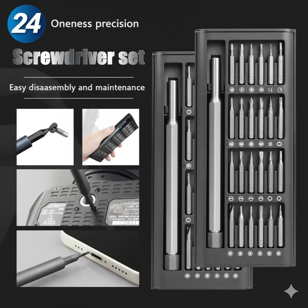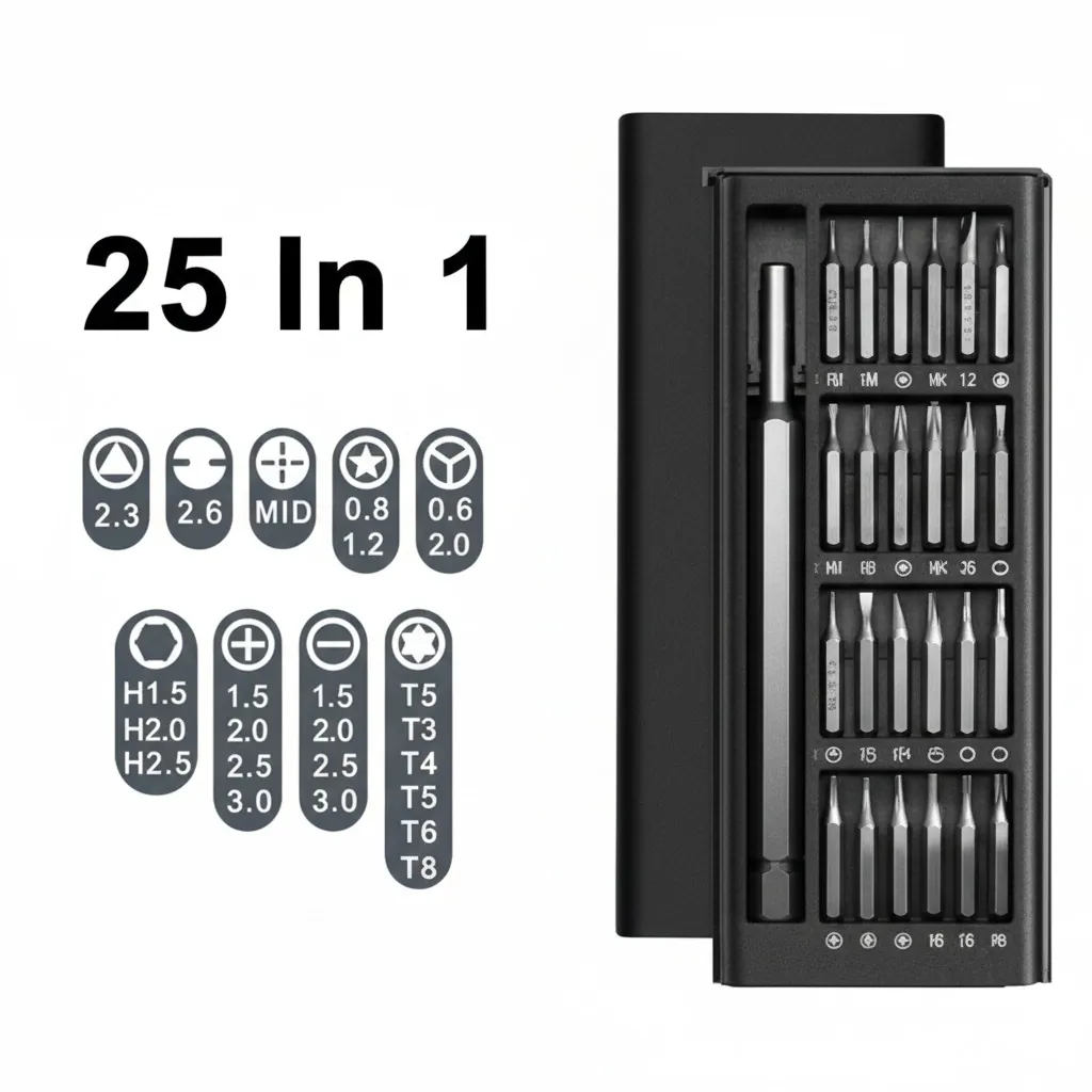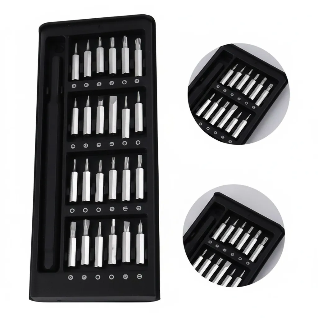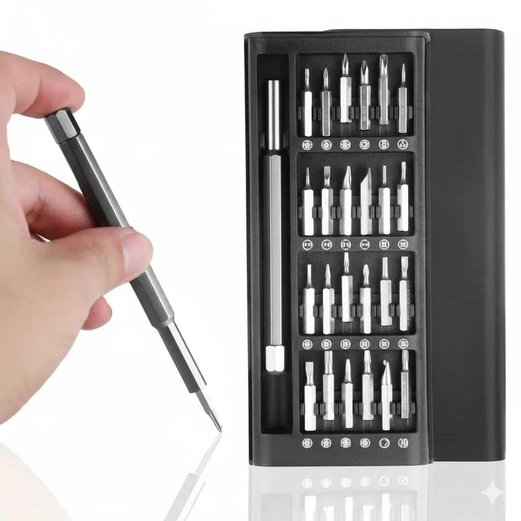 The 32-in-1 Precision Screwdriver Set is the essential toolkit for any electronics enthusiast, DIY hobbyist, or professional technician. This comprehensive set includes a durable, ergonomic screwdriver handle and 30 precision interchangeable bits, covering all the common and specialty screw types (Phillips, Slotted, Torx, Hex, Tri-Wing, Pentalobe, etc.) required for repairing modern small devices.