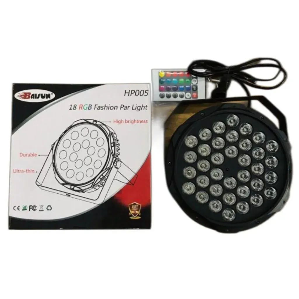 Bring vibrant energy to your events with the 36 RGB LED Par Light. Designed for professionals and party lovers alike, this ultra-thin yet durable lighting fixture delivers powerful RGB colors that transform any venue into a lively atmosphere.
