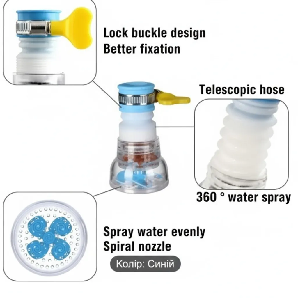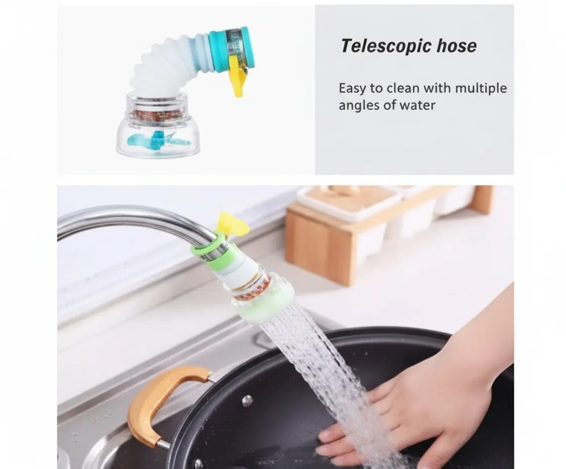 Enhance your kitchen functionality and hygiene with the 360° Rotating Filter Faucet Sprayer. This clever attachment easily clamps onto your existing faucet, instantly upgrading it with features essential for modern washing. The 360-degree swivel allows the water stream to reach every corner of your sink, making dishwashing and cleaning fruits (as shown in the image) significantly easier.