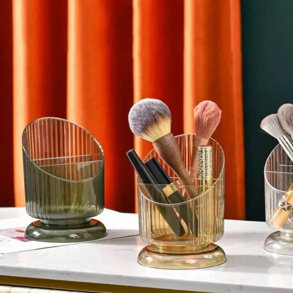 The 360° Rotating Makeup Brush Holder is a premium cosmetic organizer crafted for beauty lovers who value elegance and convenience. Featuring a smooth full-circle rotation, this organizer allows quick access to all your makeup essentials without any hassle.