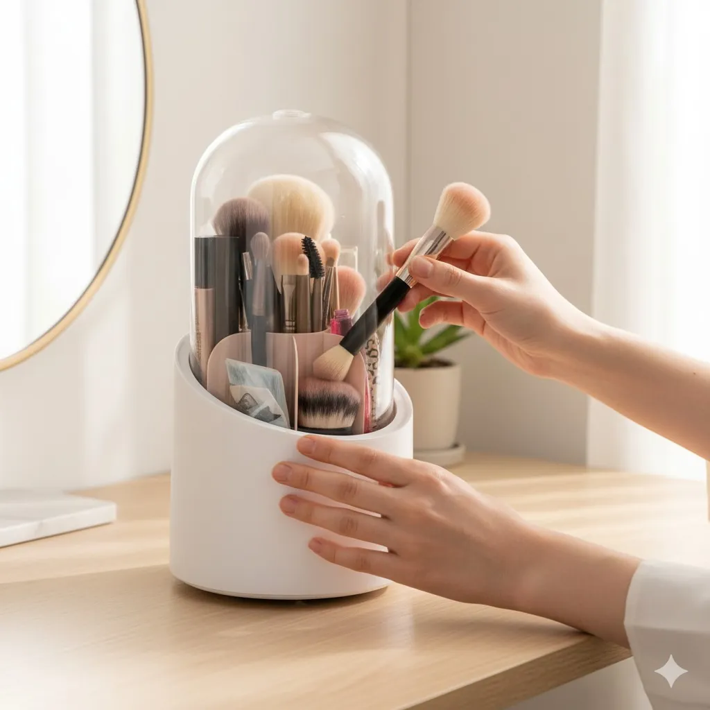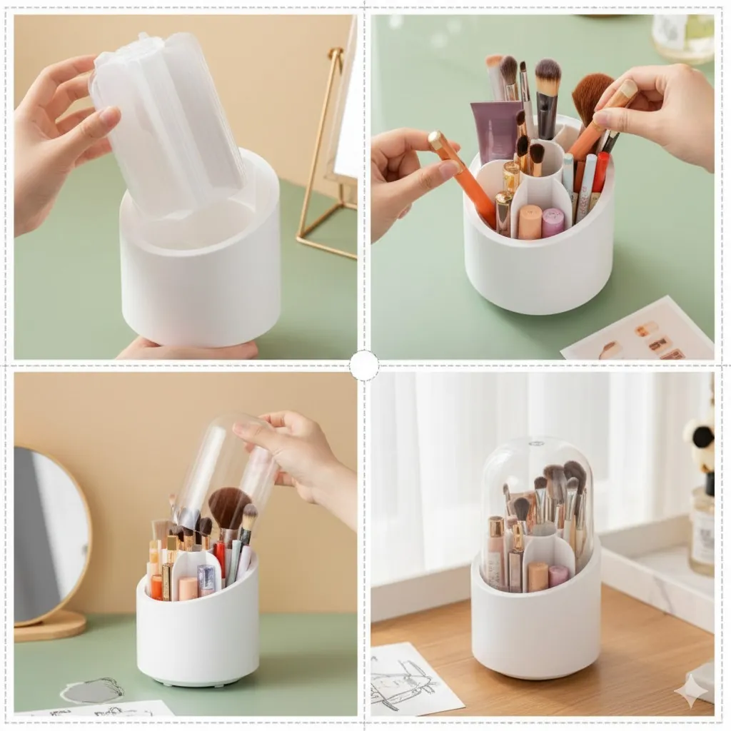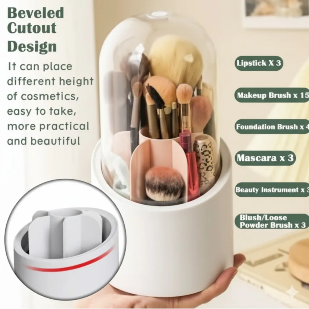 360° Rotating Makeup Brush Holder with Dustproof Lid & 7 Compartments