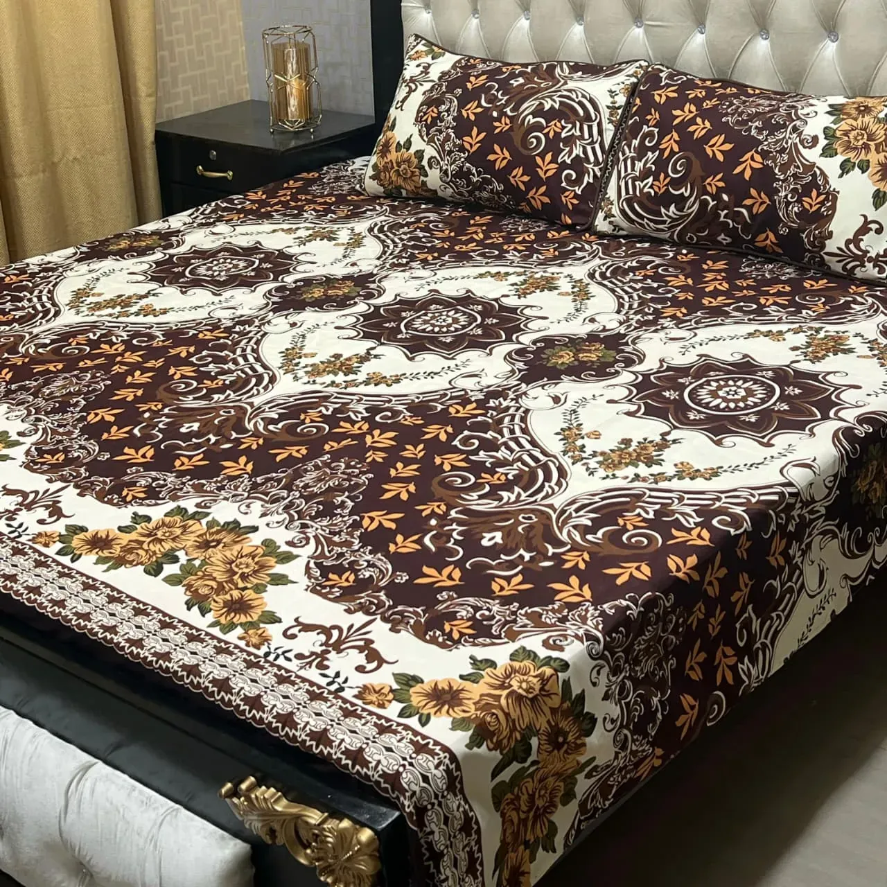 The regal 3D printed design combines rich colors and ornate patterns, transforming your bedroom into a royal suite. The baroque floral borders, along with coordinated 2 pillow covers (45x70 cm), make this a complete decor package for homes that value beauty and tradition.