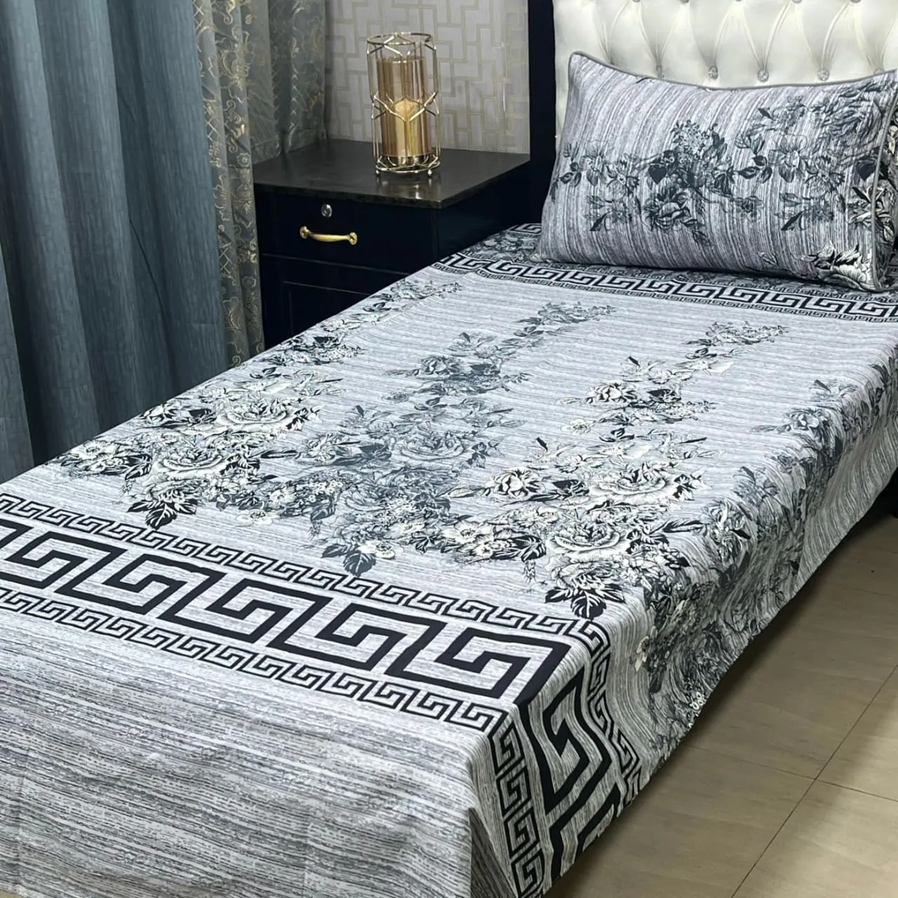 Crafted from soft and breathable 3D-Crystal Cotton, these bedsheets feature classic floral motifs with clean Greek-style borders. The detailed print work in neutral color palettes blends beautifully with modern or traditional home décor.