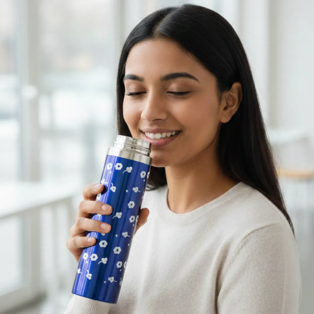 Its sleek and modern design makes it suitable for carrying water, tea, coffee, milk or cold drinks while maintaining temperature efficiently.