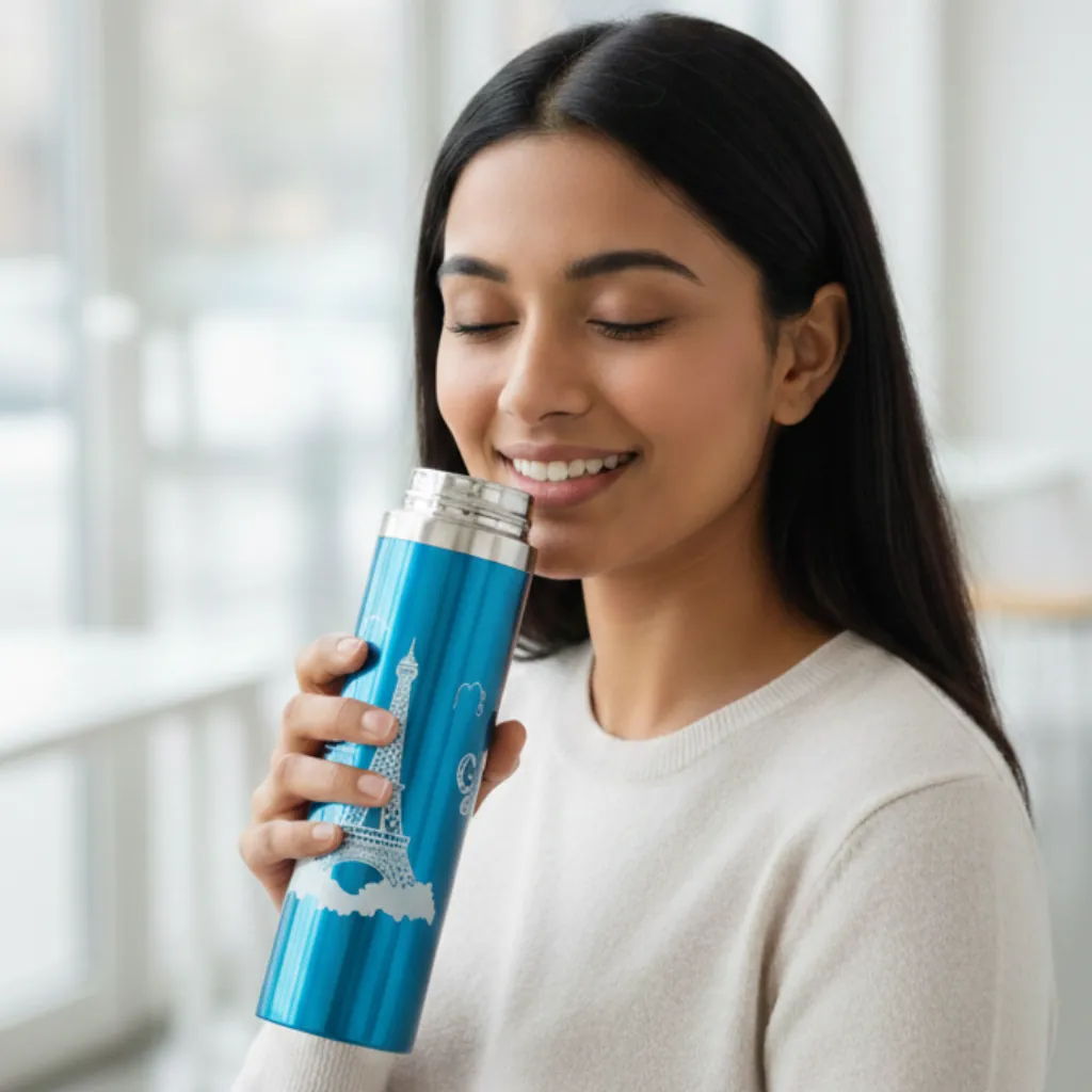 The elegant Eiffel Tower print gives it a premium and modern look, making it perfect for school, office, travel, gym, and outdoor use. The attached carry strap makes it easy to hold and carry anywhere.