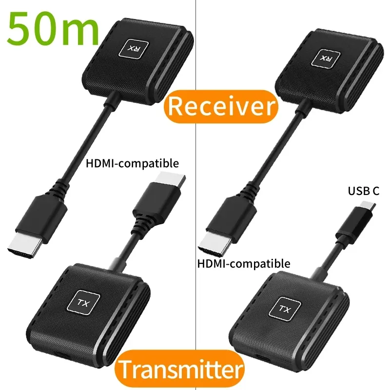 Enjoy wireless freedom and high-quality visuals with the 50M Type-C (CHD01) Wireless HDMI 1080P Transmitter & Receiver Kit. Designed for professionals and home users alike, this advanced HDMI extender transmits Full HD video and audio up to 50 meters through a stable 5GHz wireless connection β no cables, no latency, no hassle.