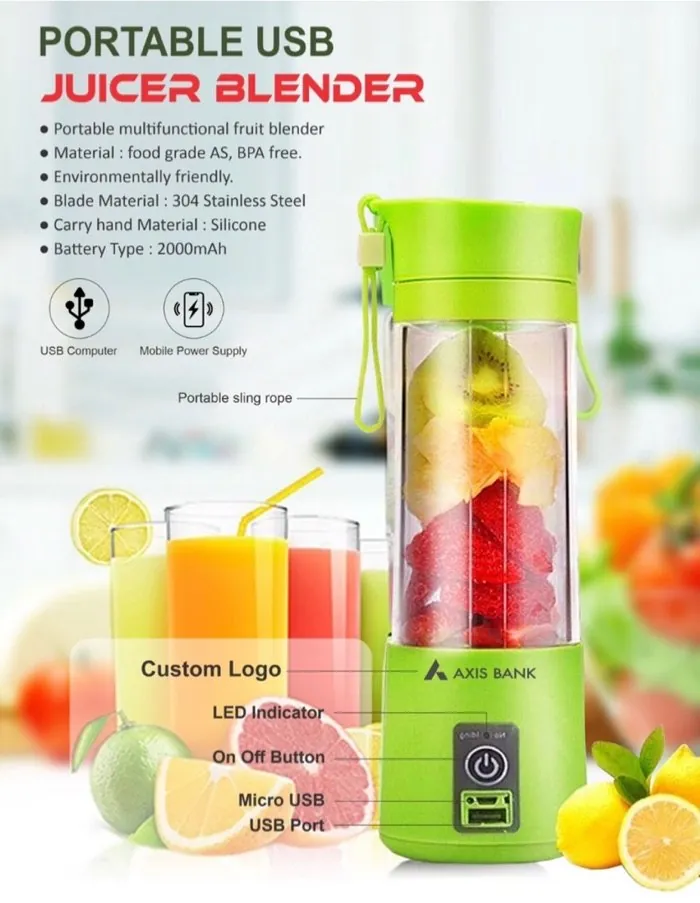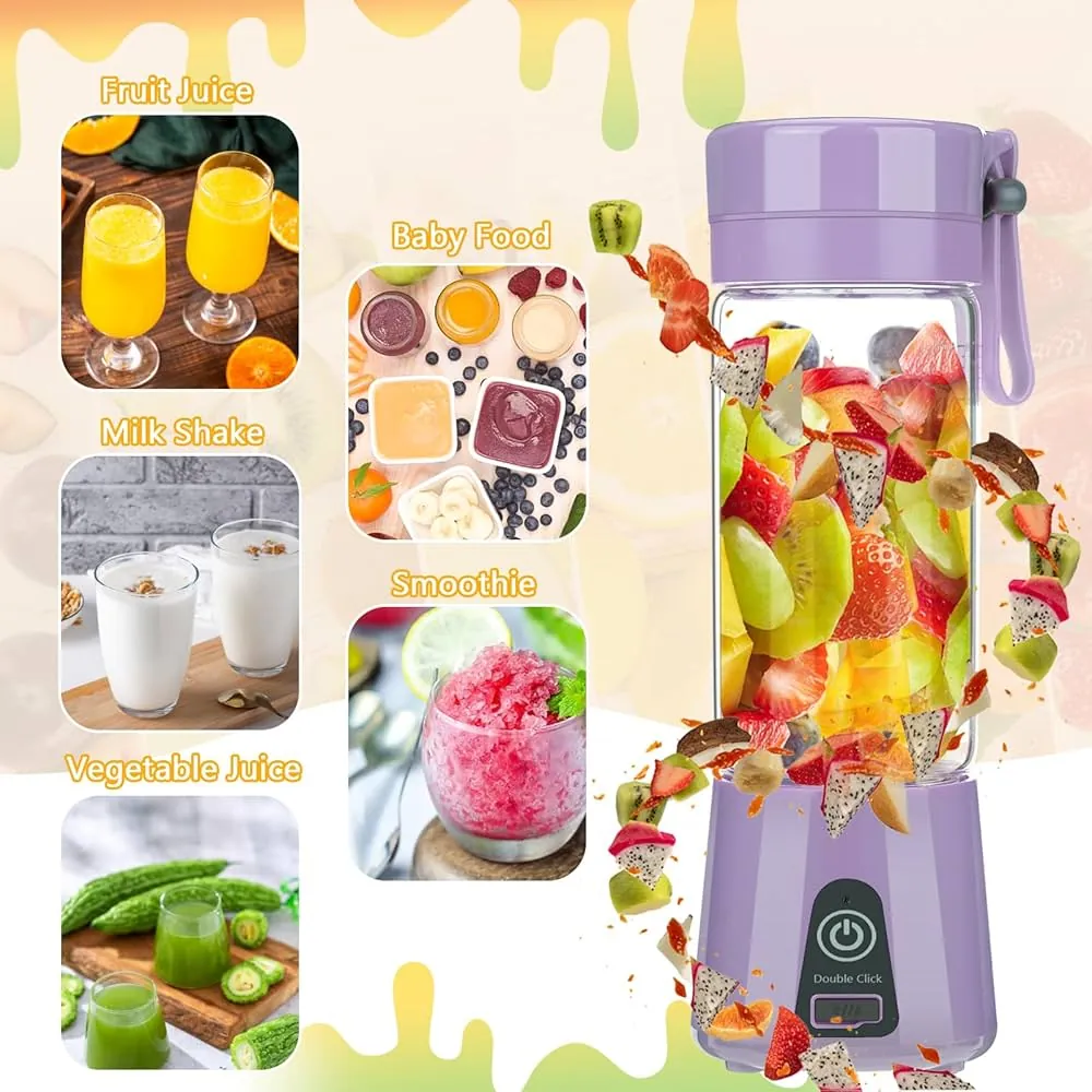 6 Blade Mini Portable USB Juicer Blender | Rechargeable Smoothie Maker | High-Speed Fruit Mixer | Made in China