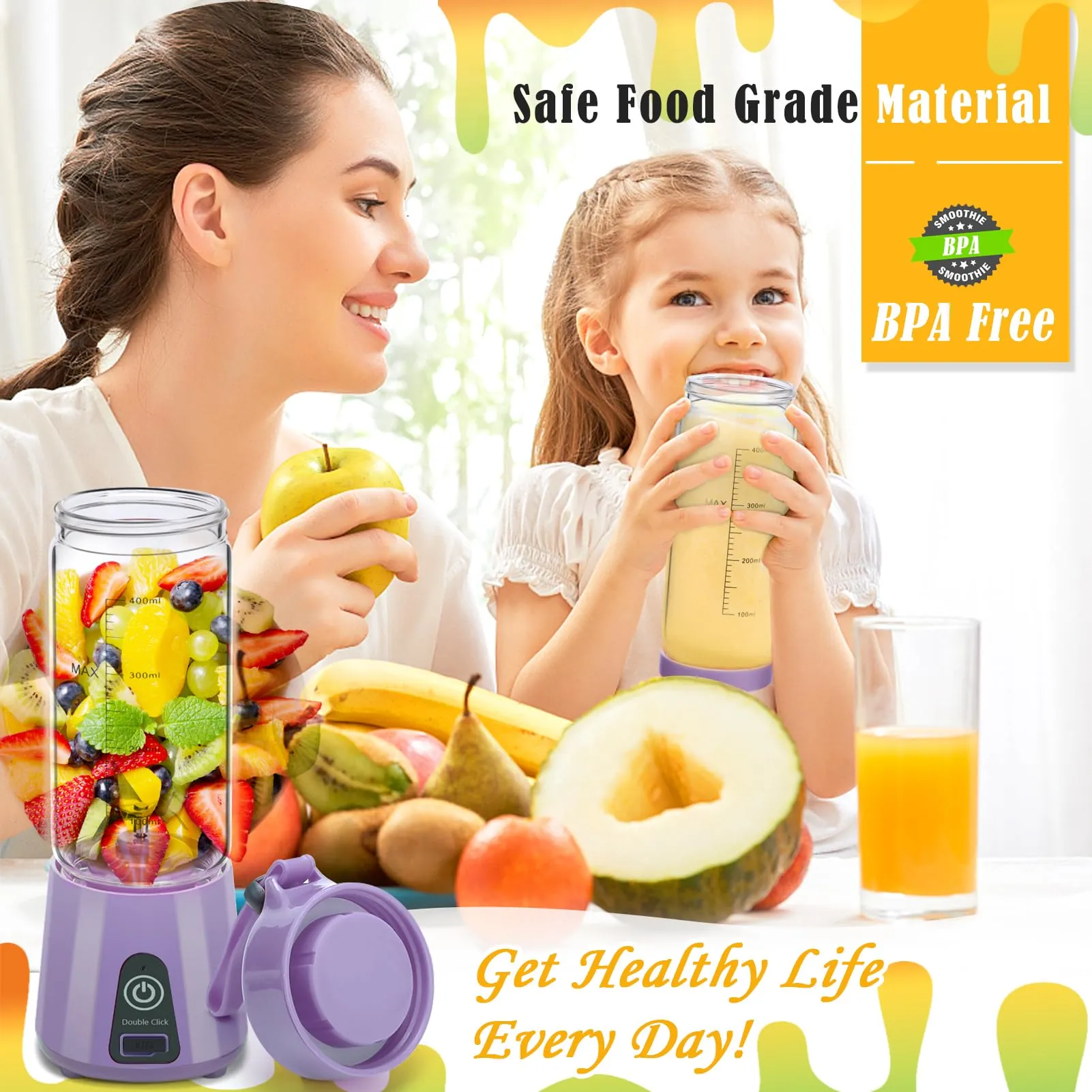 Its compact and lightweight design makes it ideal for travel, office, gym, or outdoor adventures. The USB rechargeable battery allows you to charge easily via laptop, power bank, or car charger. Simply fill, blend, and enjoy your drink within seconds!