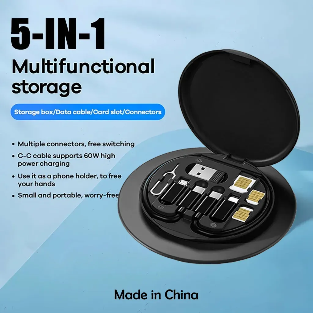 60W Multifunction Data Cable Set and Organizer | Portable Travel Charging Kit with USB-C to iPhone/Micro-USB Adapters | All-in-One Fast Charging Solution for Multi-Device Compatibility