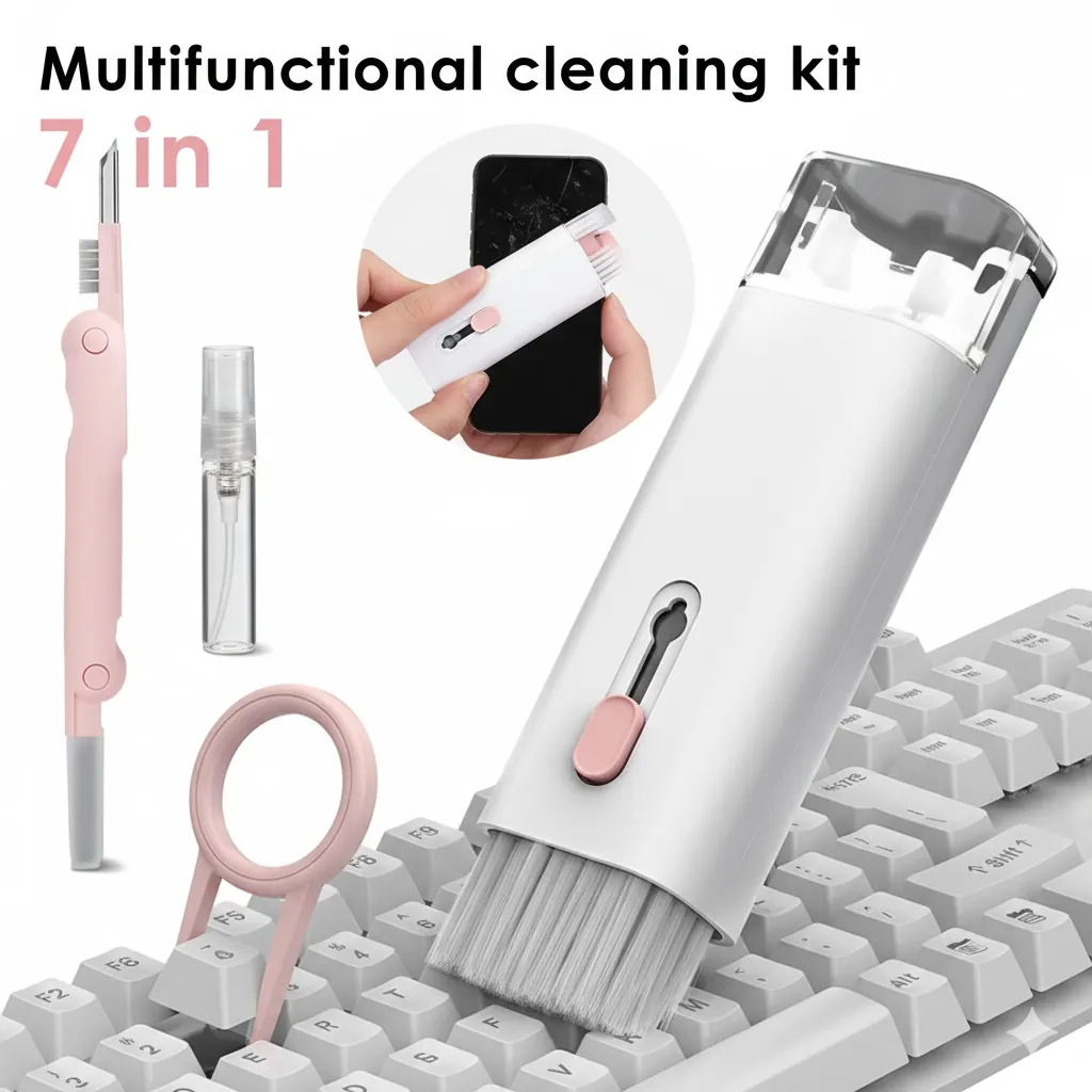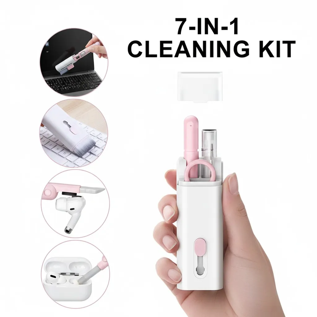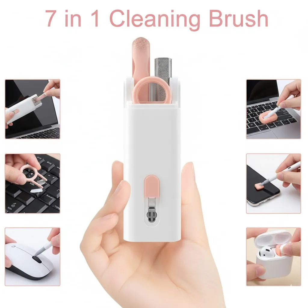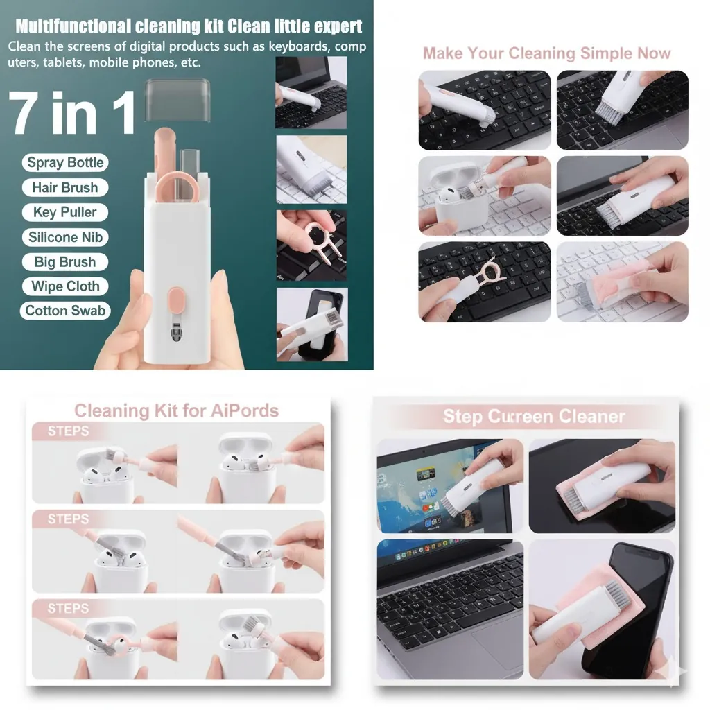 7-in-1 Portable Electronic Cleaning Kit for AirPods, Keyboard, Laptop Screen, & Phone - Multifunctional Cleaner Pen Tool with Brush, Screen Wiper & Keycap Puller