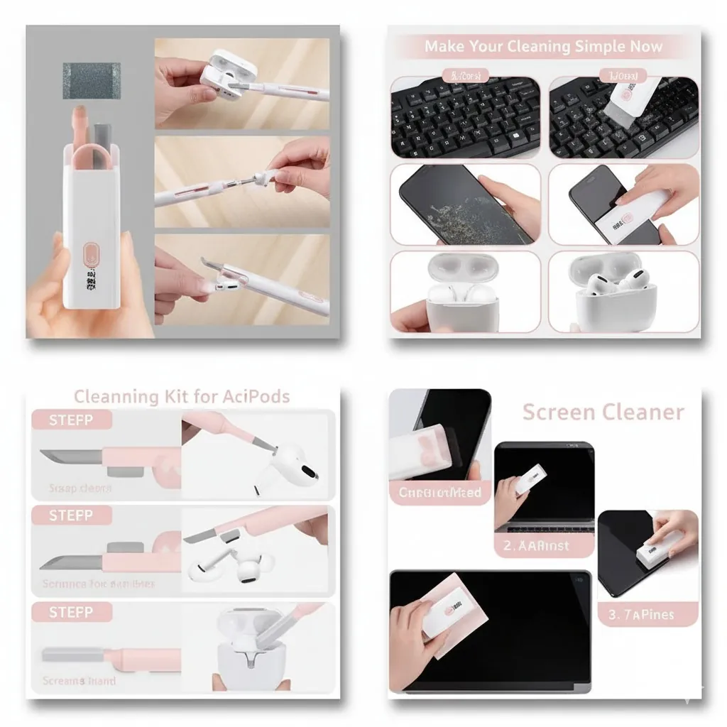 Keep all your essential electronics spotless and hygienic with the 7-in-1 Portable Multi-Functional Electronic Cleaning Kit. This ultra-compact tool is your all-in-one solution for tackling dust, grime, and fingerprints on a variety of devices, including AirPods/earbuds, mechanical keyboards, laptops, tablets, and smartphones.