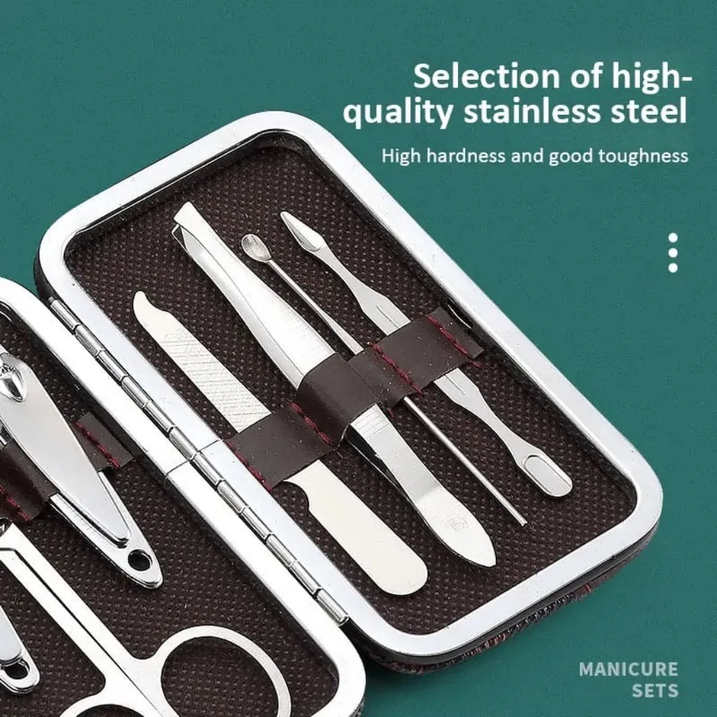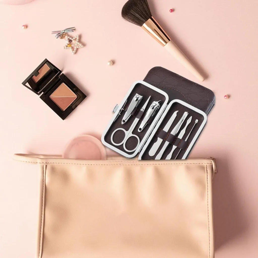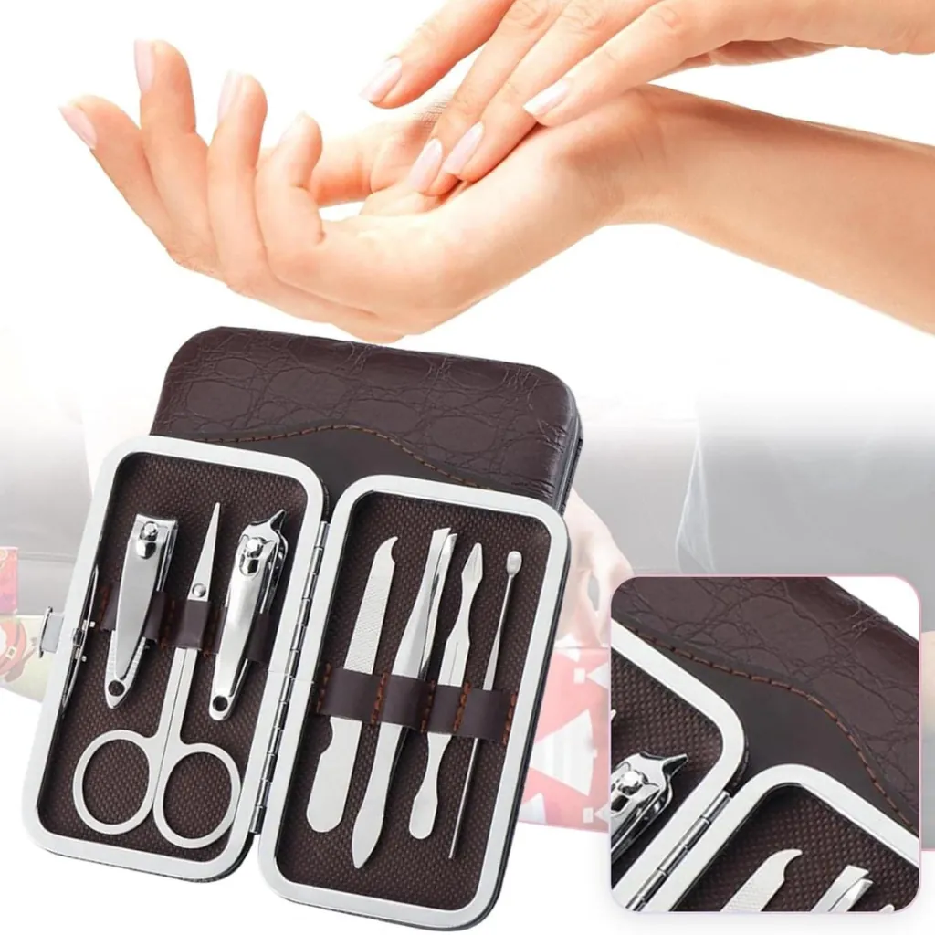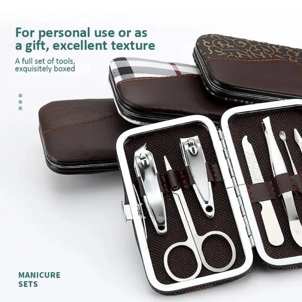 Keep your nails in perfect condition with our comprehensive 7-in-1 Manicure & Pedicure Grooming Set. This kit includes all the essential tools you need for professional-quality nail care at home or on the go, including nail clippers, scissors, cuticle pushers, and a nail file. Each tool is crafted from high-quality stainless steel for durability and precision. The entire set comes housed in a sleek, portable case, making it easy to store, organize, and carry in your bag or luggage. It's the perfect gift for yourself or a loved one who values personal grooming.