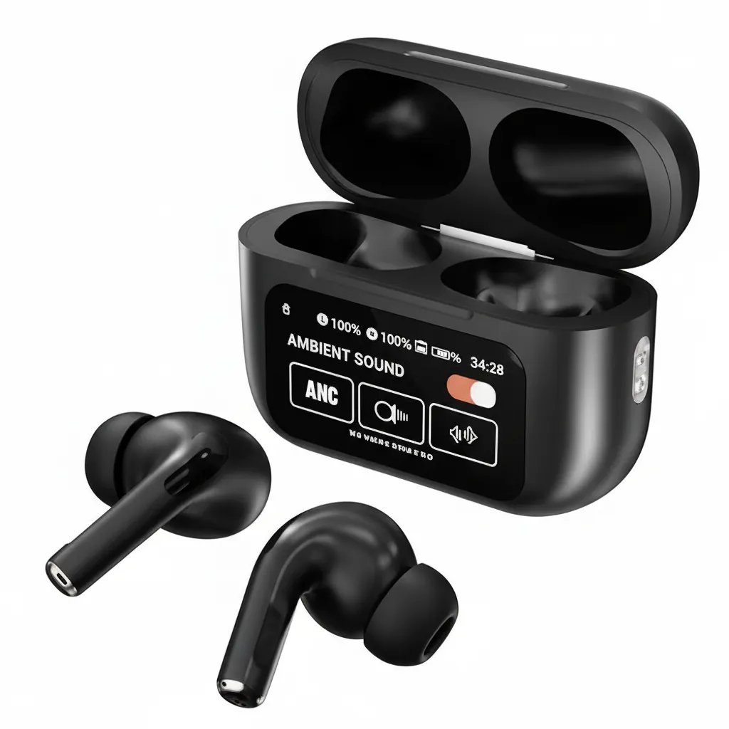 Title: A9 PRO APP ANC/ENC DISPLAY TOUCH CONTROL BT 5.4 Wireless EARBUDS WITH ZWSVIBE APP BLACK