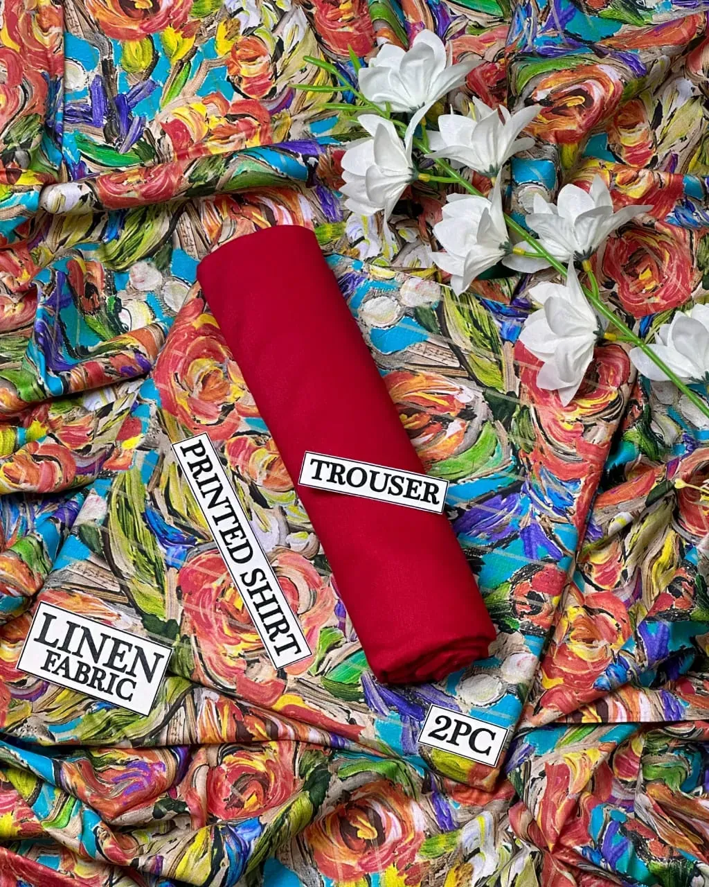 Step up your fashion game with our exclusive collection of unstitched 2-piece linen suits, designed for the modern woman who loves comfort and style. Each suit in this collection features a unique, eye-catching abstract floral printed linen shirt, showcasing a rich blend of colors that are sure to make a statement. The high-quality linen fabric is known for its breathability and soft feel, making these suits ideal for everyday wear, casual outings, or special occasions.