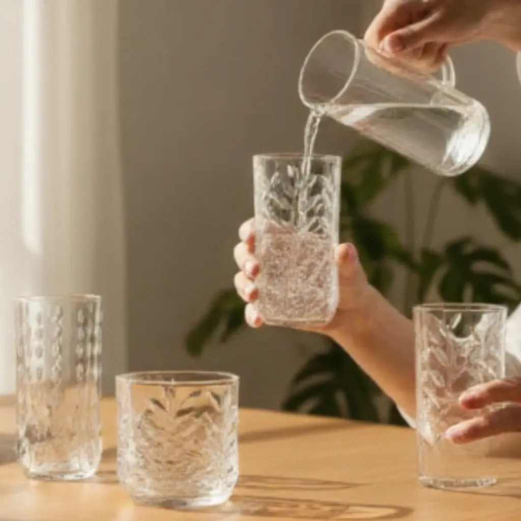 Crafted from high-quality clear glass, it offers excellent durability and clarity, ensuring long-term use without compromising style. The 350ML capacity makes it perfect for serving water, juices, soft drinks, and other beverages.