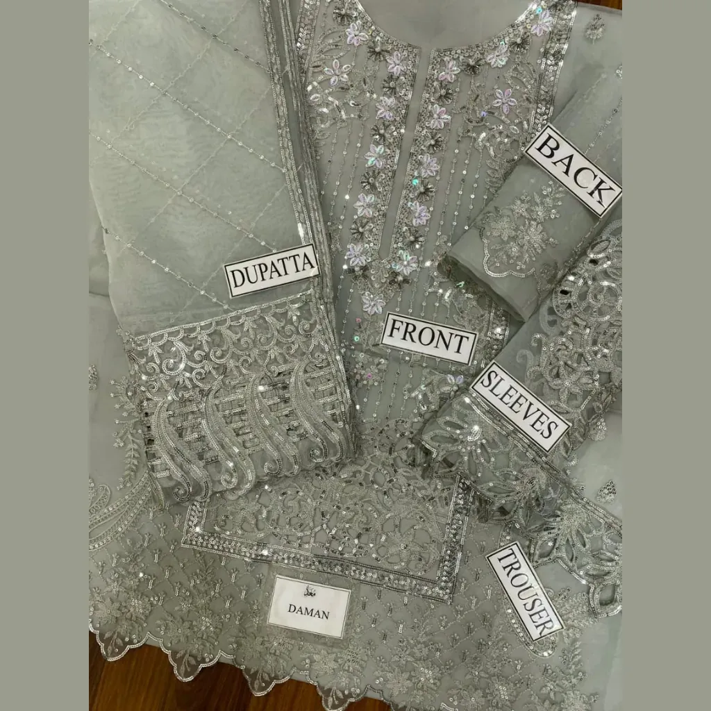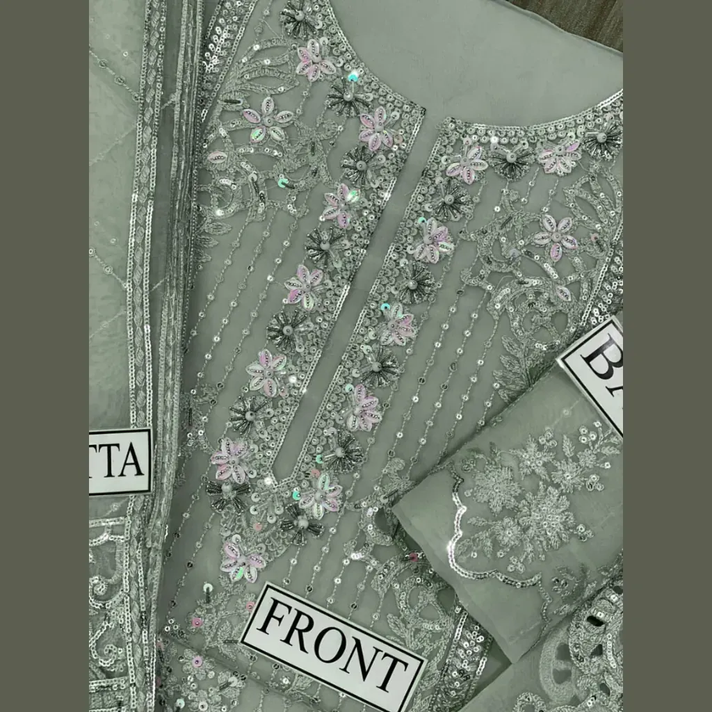 ✨ Front Design: Beautifully designed organza embroidered hand-embellished cutwork that brings luxury detailing to the forefront.