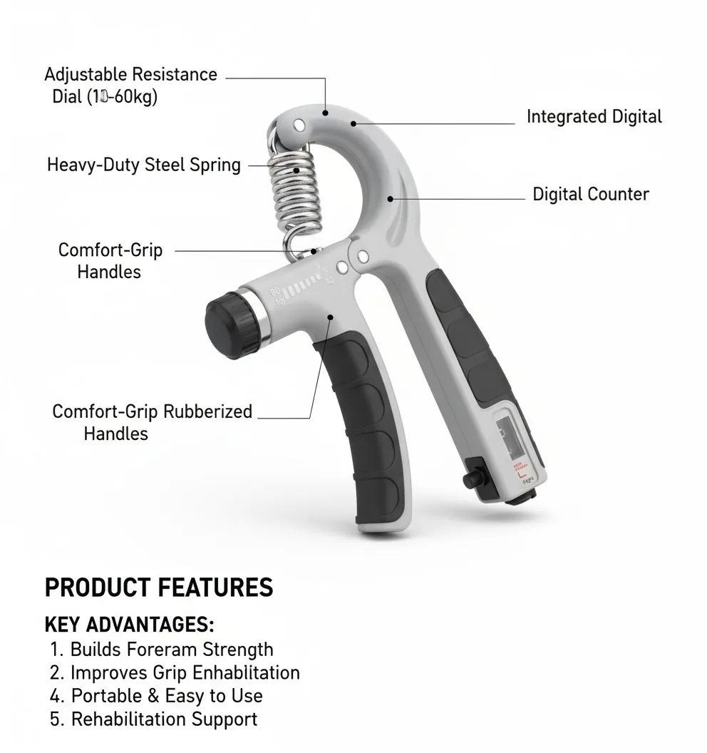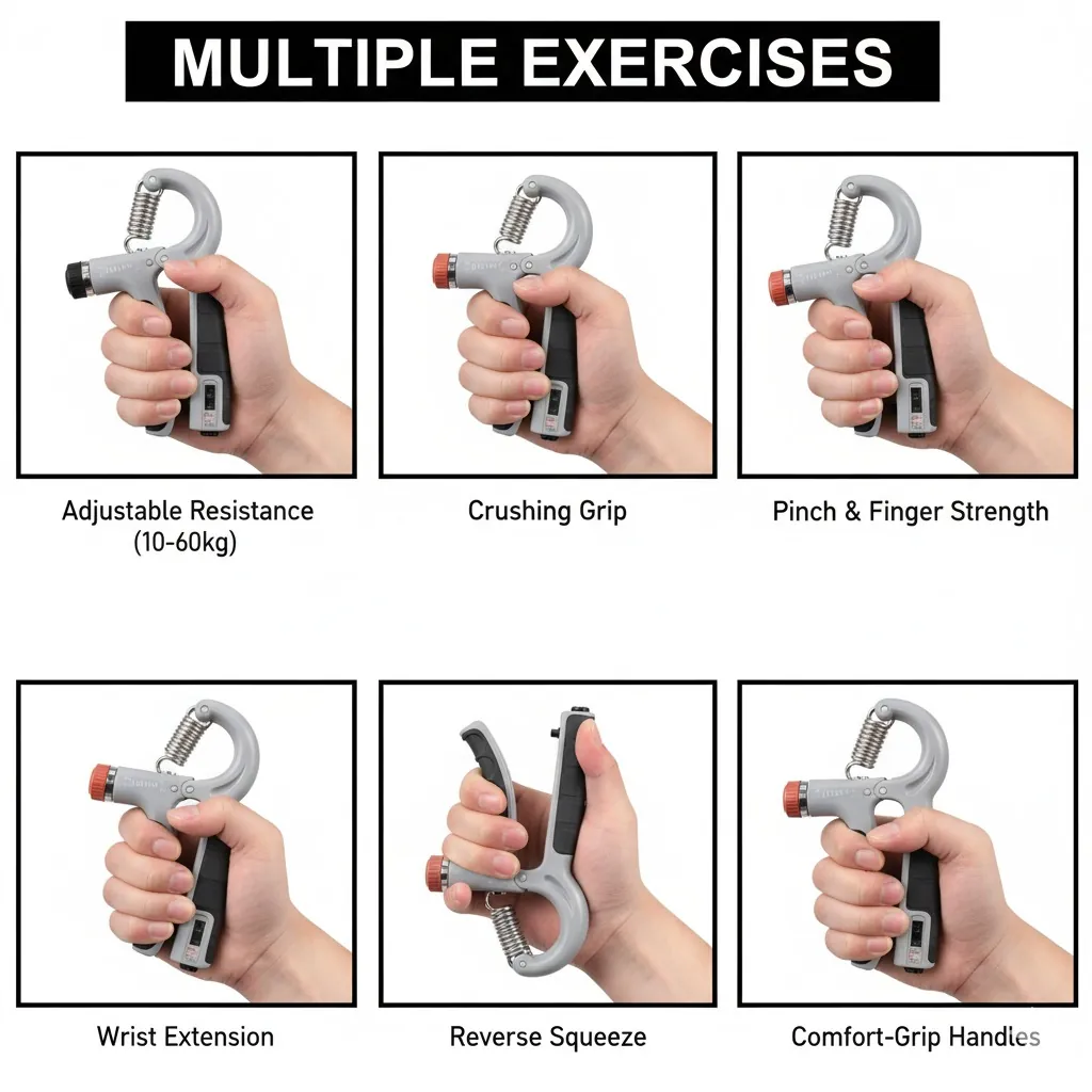 Looking for a versatile tool to build forearm muscle and improve grip strength? This Adjustable Hand Grip Strengthener is an ideal choice for athletes, climbers, bodybuilders, and physiotherapy.