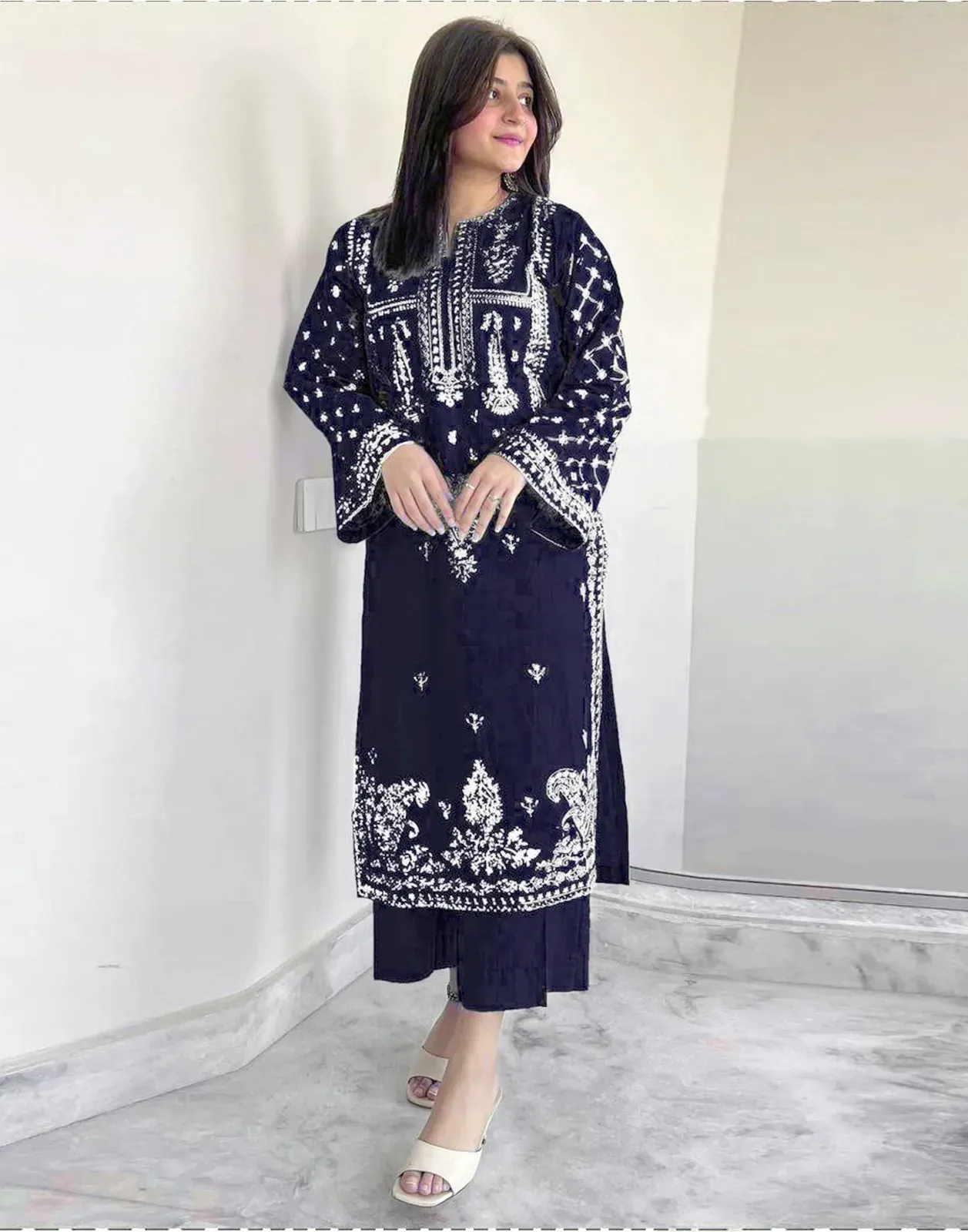 AISLING | 2-Piece Embroidered Dhanak Suit Collection | Heavy Embroidery on Front & Sleeves | Premium Quality Airjet Dhanak Fabric | Ready to Stitch