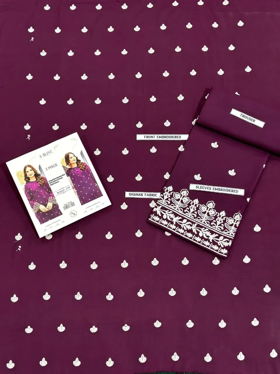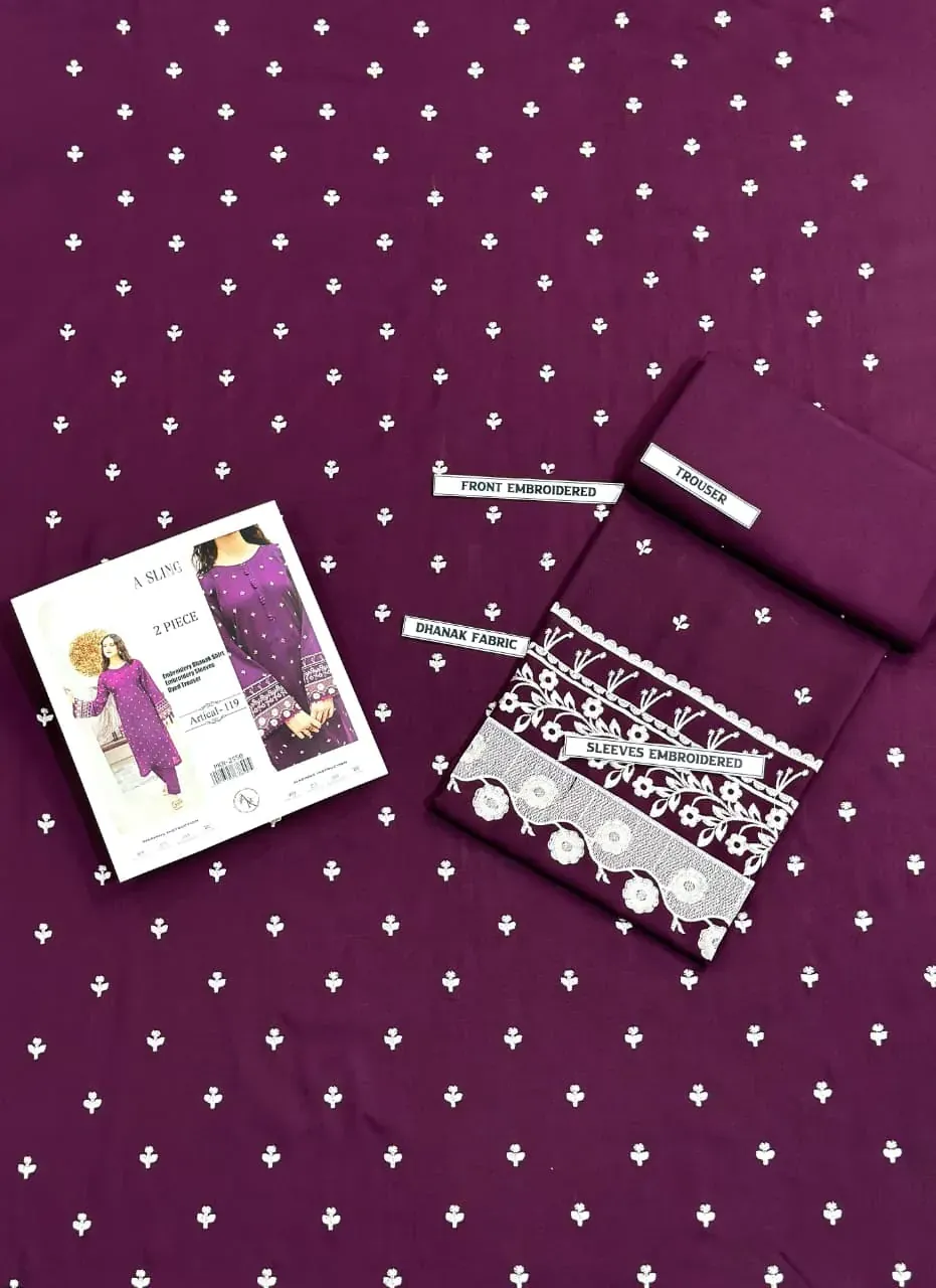 AISLING | 2-Piece Embroidered Dhanak Suit | Heavy Embroidery on Front & Sleeves | Ready to Stitch | Premium Quality Fabric