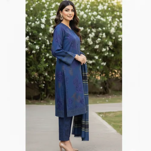 Being unstitched, this suit offers you the creative freedom to tailor it to your exact size and style preference, be it a modern straight-cut shirt or a classic A-line design. Perfect for daily wear, office, or semi-formal gatherings, this allover printed Dhank suit is a versatile and essential addition to your winter wardrobe.