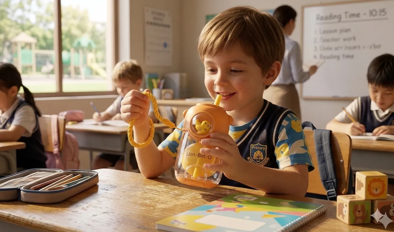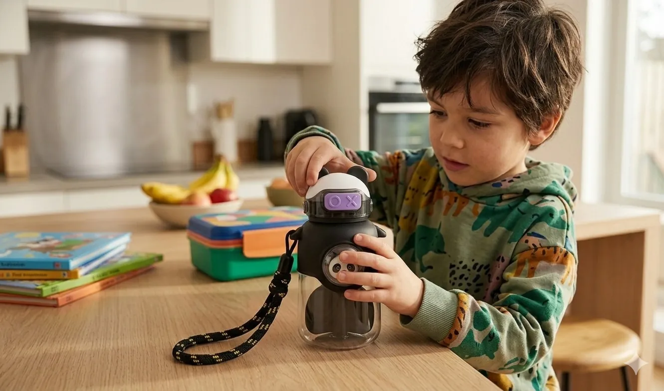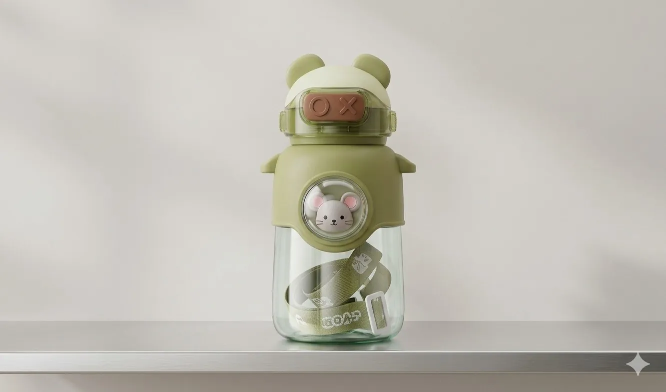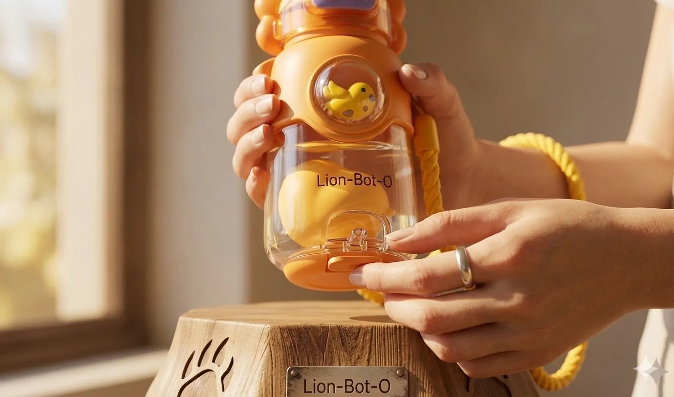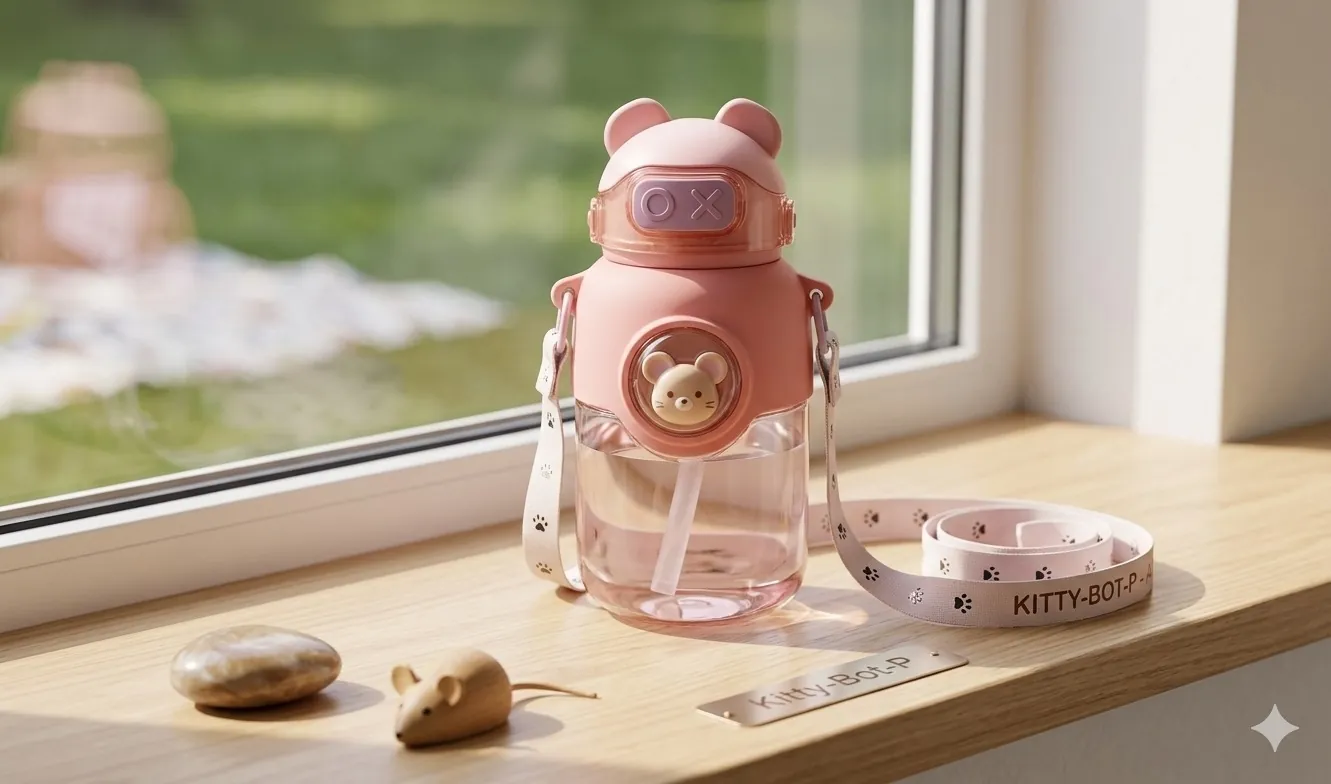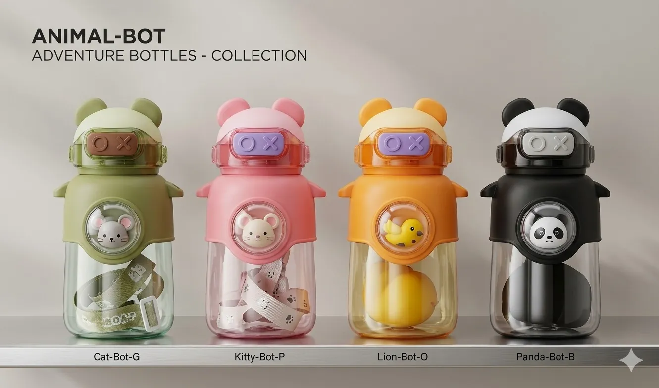 Animal-Bot Kids Adventure Straw Water Bottle – 600ml Leak-Proof Sipper with Adjustable Carry Strap | BPA-Free & Durable.Fuel your child's imagination and keep them hydrated with the all-new Animal-Bot Adventure Bottles. This premium collection merges a sleek "Robot" aesthetic with adorable animal characters (Cat, Kitty, Lion, and Panda), making it a must-have accessory for every active kid.Each bottle is crafted from high-quality, impact-resistant, and BPA-free material, ensuring it stands up to the rough and tumble of playground life. The innovative design includes a transparent "cockpit" window showcasing a 3D mini-figure, adding a playful touch that children love. Equipped with a secure locking lid and a soft food-grade straw, it prevents spills and leaks even when tossed inside a school bag. With the included matching printed strap, your little explorer can carry their "Bot" buddy wherever they go!