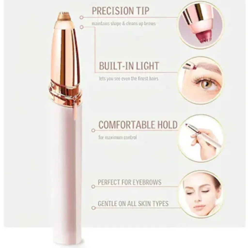 The built-in LED light ensures you never miss a hair, while the rechargeable battery provides cordless convenience. Its pen-like design fits comfortably in your hand and slips easily into a purse or makeup pouch. Suitable for all skin types, this eyebrow trimmer is perfect for quick touch-ups and daily grooming—no more plucking or waxing needed!