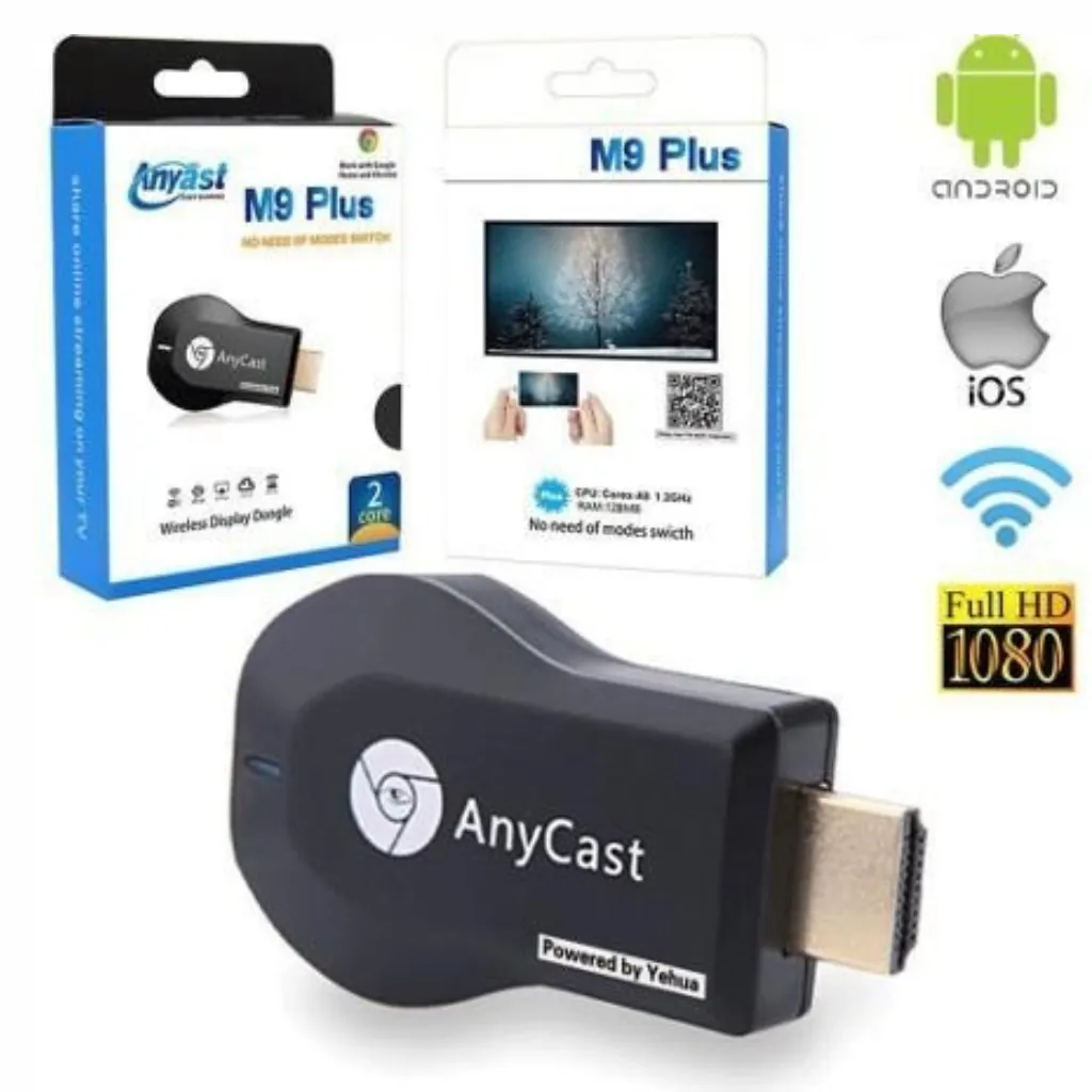 Upgrade your home entertainment with the AnyCast M9 Plus 2-Core 1080P HDMI WiFi Display TV Dongle (CPU 8268) — a powerful wireless streaming solution that brings your favorite content to the big screen. Supporting Full HD 1080P resolution, this dongle allows you to mirror your smartphone, tablet, or laptop screen directly to your HDTV, projector, or monitor without cables.