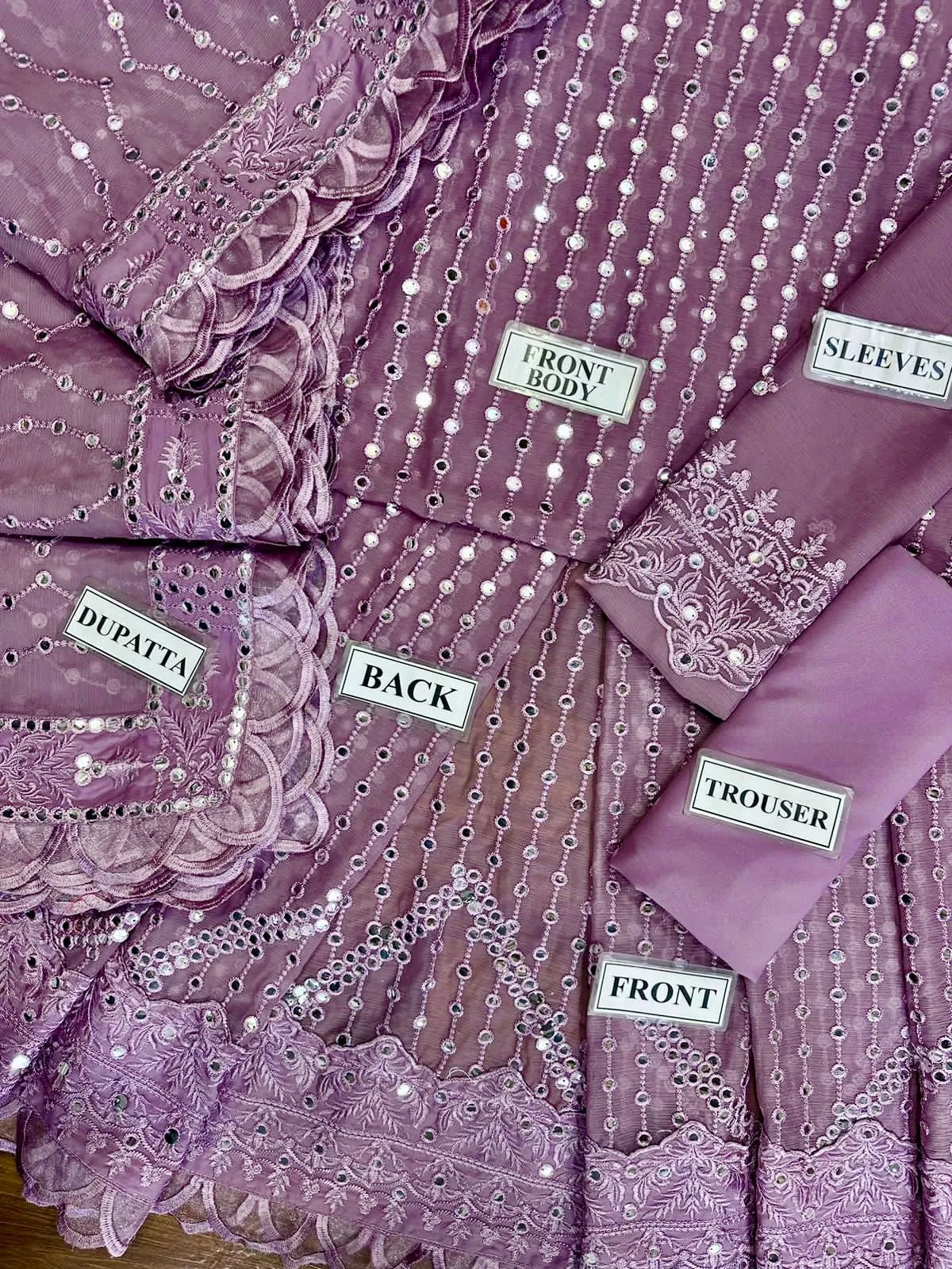 ASIM JOFA Chiffon Replica Heavy 9MM Sequence 3PC Frock