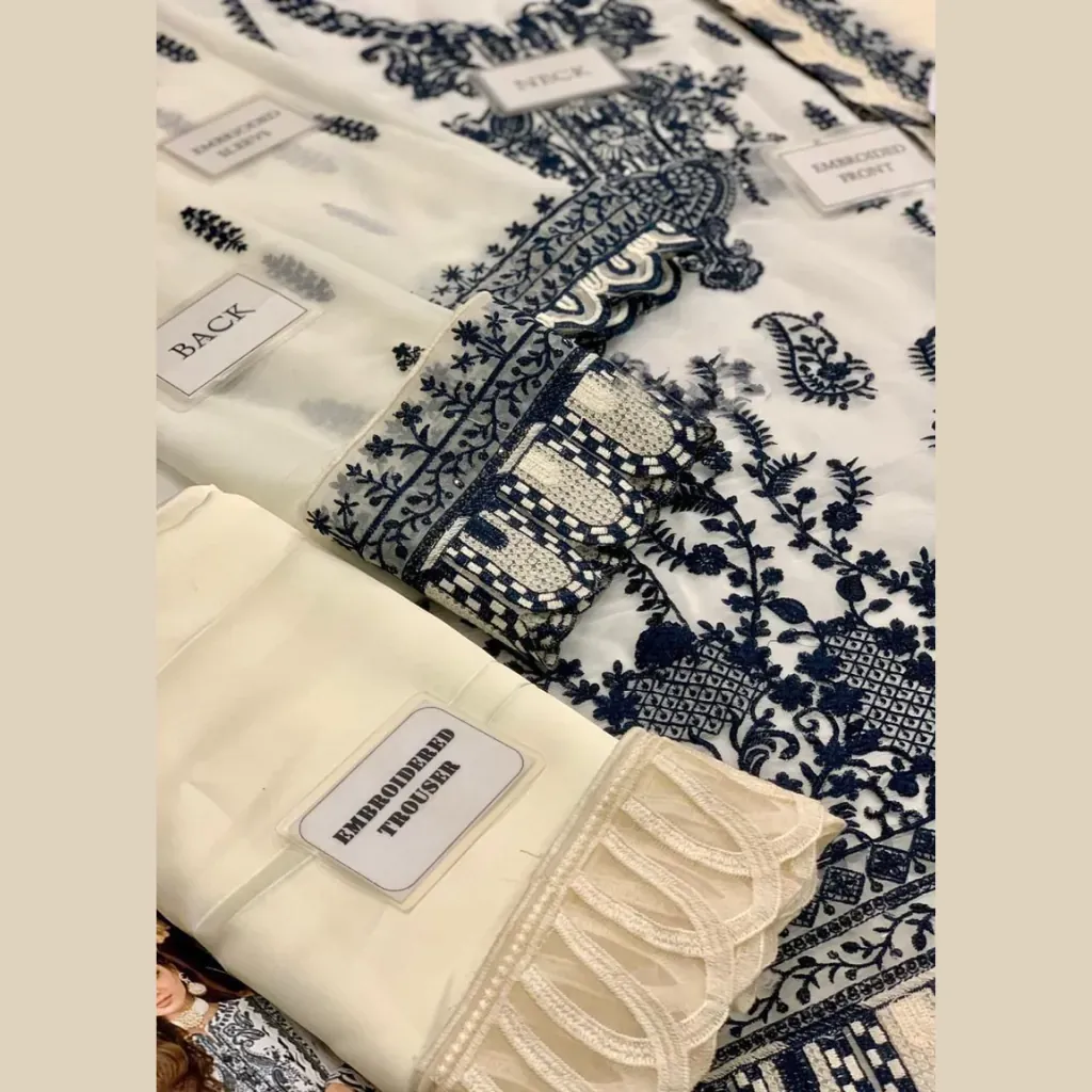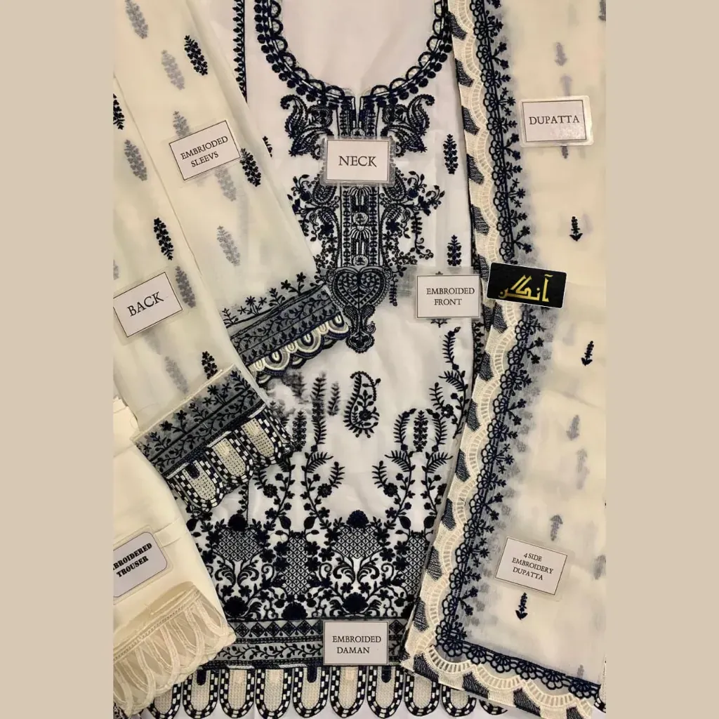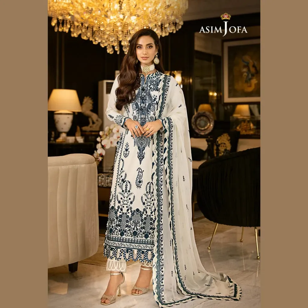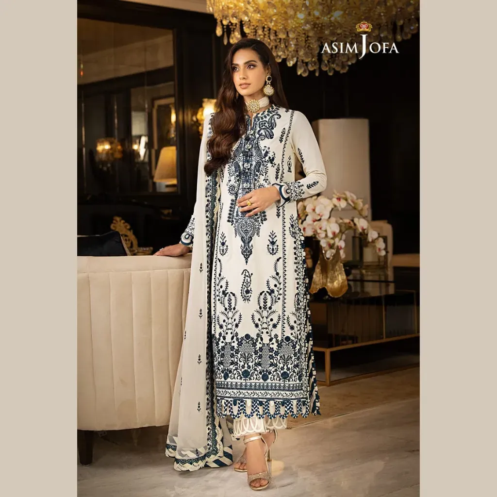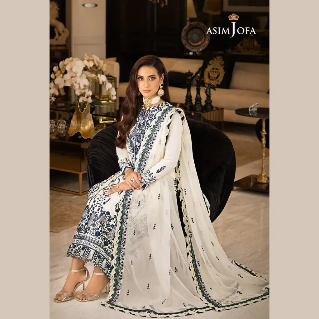 Make a statement with ASIM JOFA’s luxury embroidered chiffon unstitched 3-piece suit, specially designed for festive and formal occasions. Crafted with attention to detail, this outfit showcases alternate embroidered chiffon on the front, and a fully embroidered back, bringing a graceful touch to every angle.