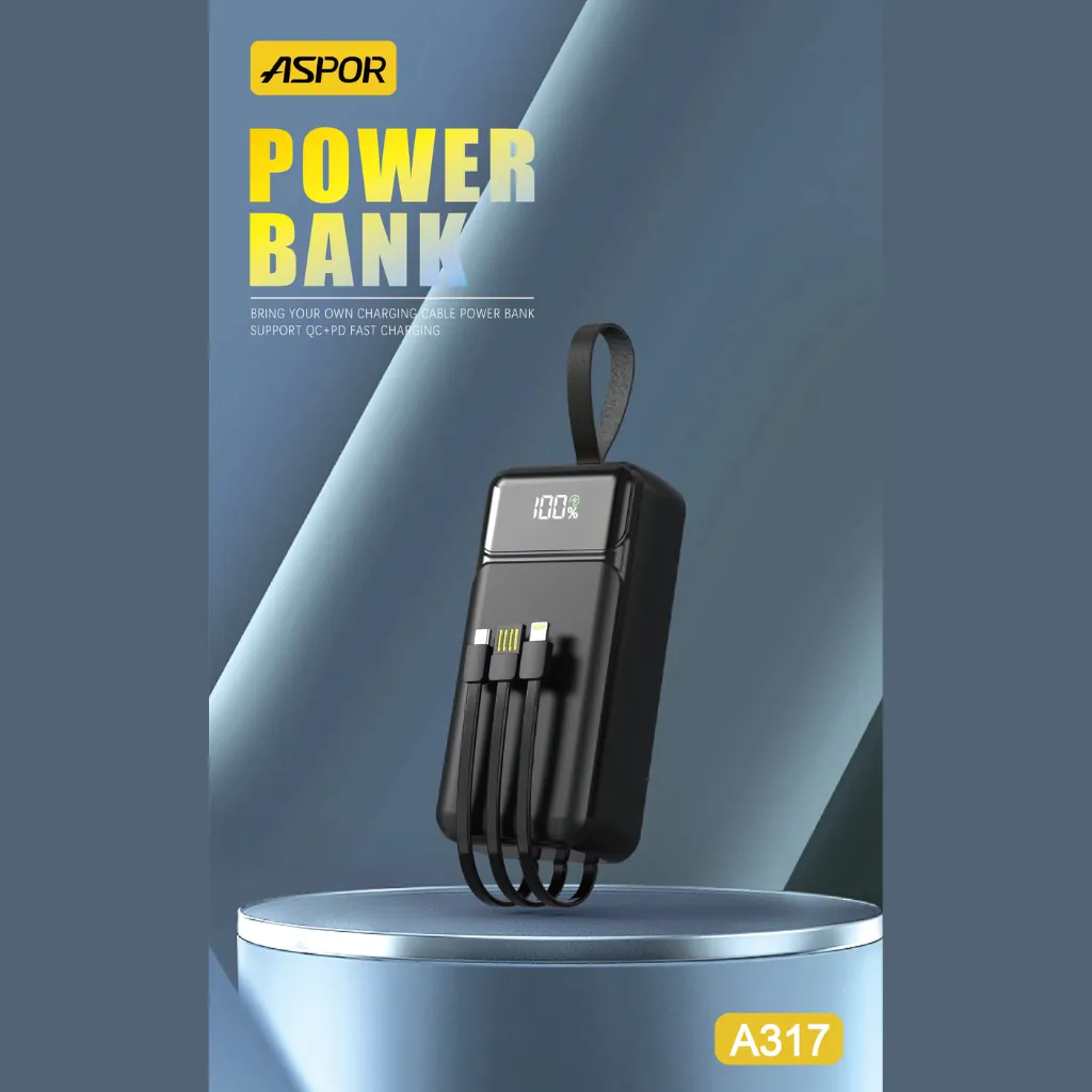 With its sleek matte black design, durable build, and universal compatibility, the Aspor A317 is your ideal power partner on the go.